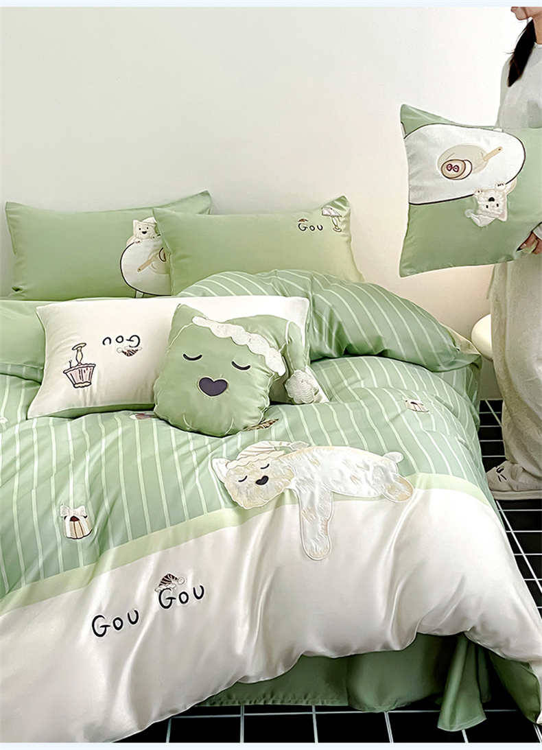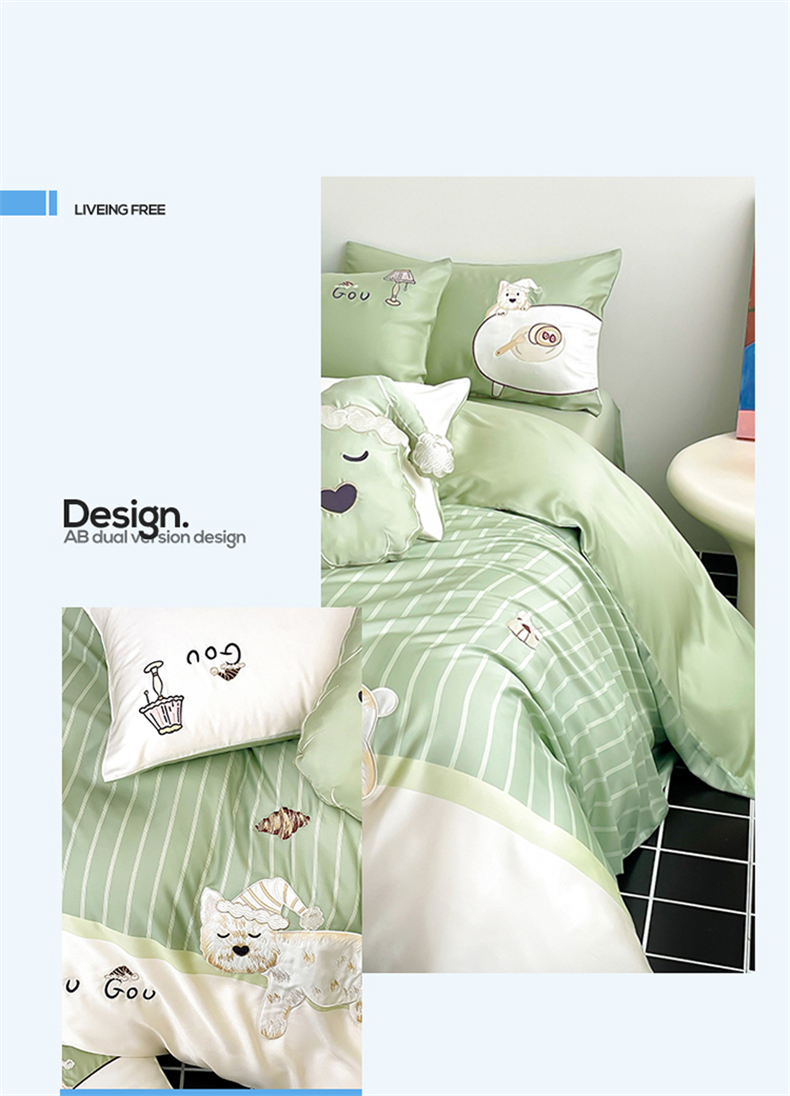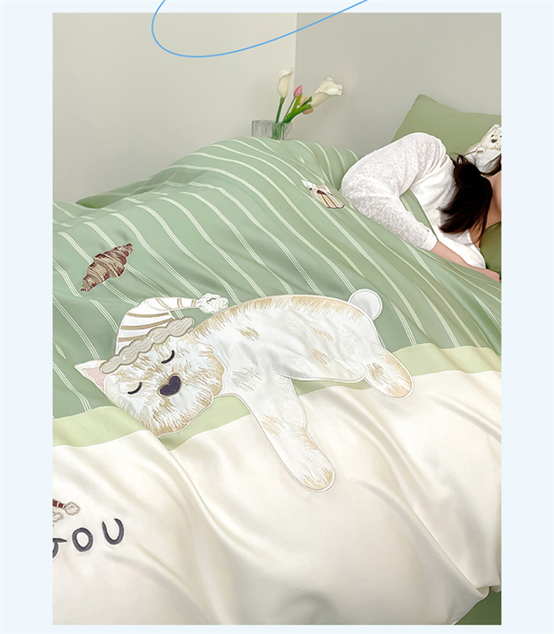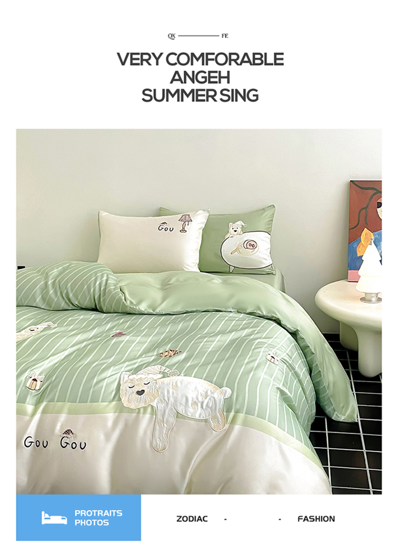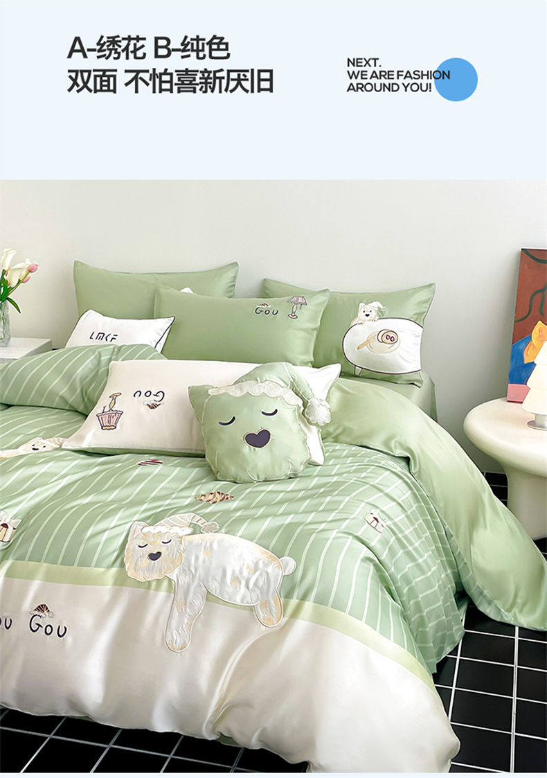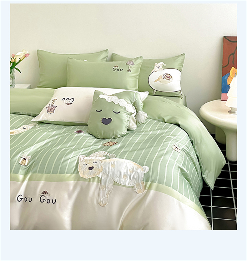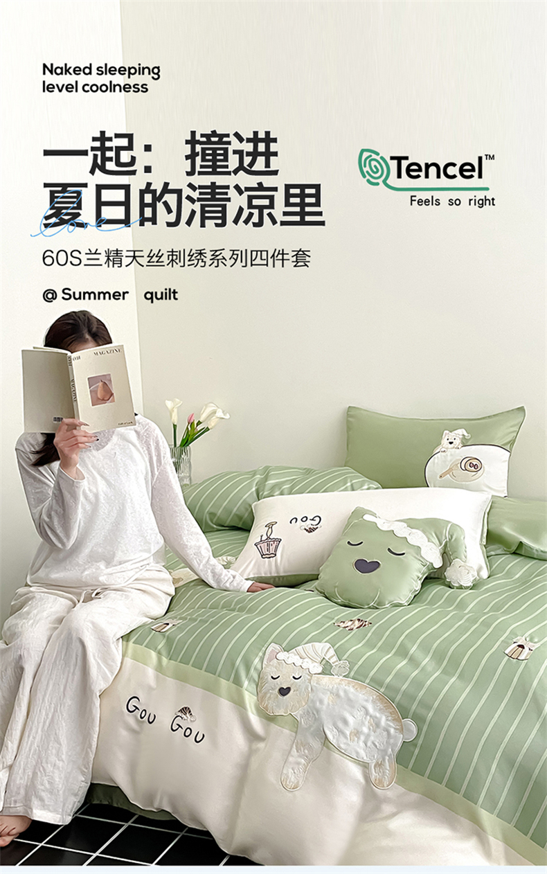 当前位置: 91家纺网 > 商品网购 > 床品套件 > 四件套 > 莱赛尔四件套 > 蓝米卡夫 2026夏季新款60S兰精天丝刺绣四件套-西高地厨房(礼盒) 西高地厨房-碧草色