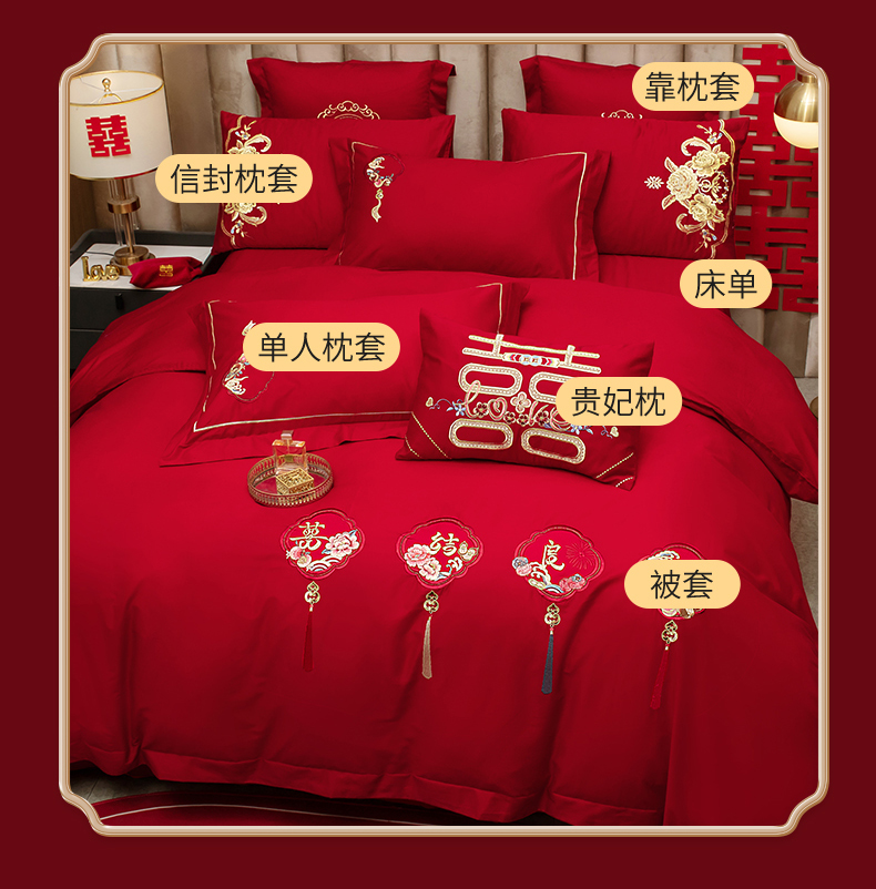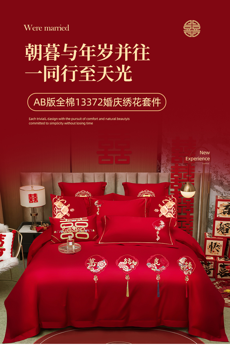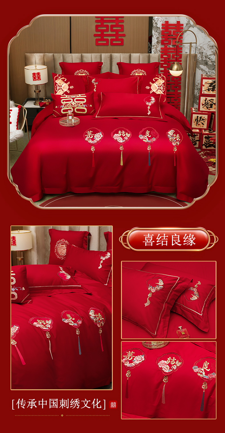 当前位置: 91家纺网 > 商品网购 > 床品套件 > 四件套 > 婚庆四件套 > 千禧家纺 2026新款全棉13372婚庆绣花系列 喜结良缘