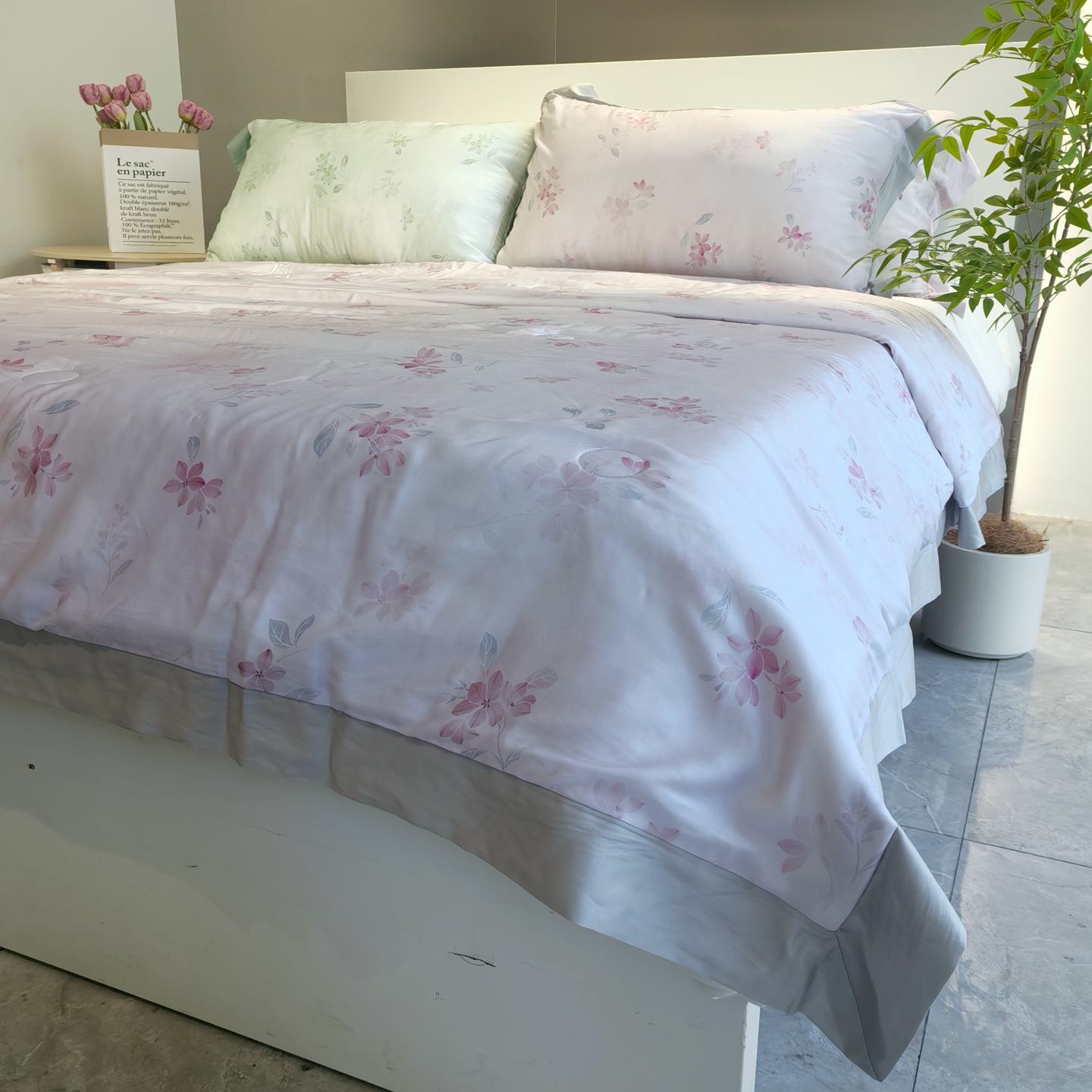 (总)ROZ home 蕊姿家居 2026春夏新款60s天丝棉数码印花四件套,风铃草 香槟,浮香 粉,浮香 绿,葡萄 绿,秋海棠 粉,秋海棠 山岚