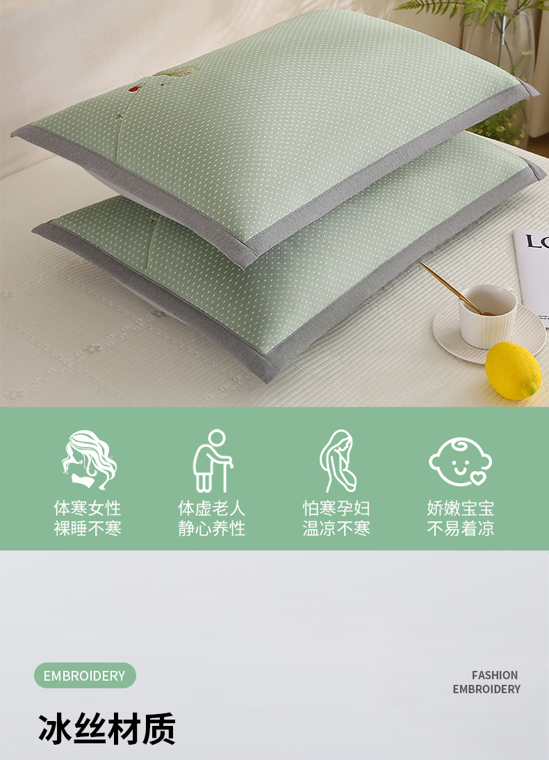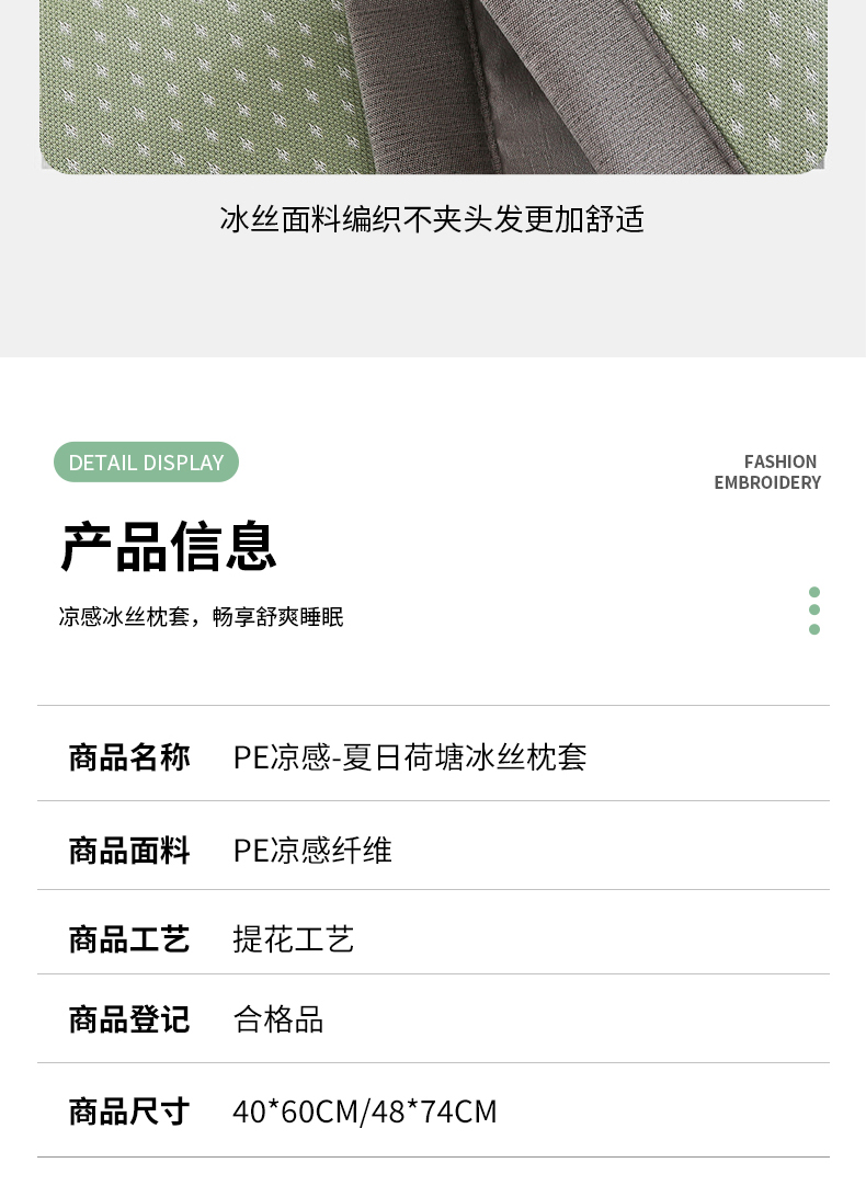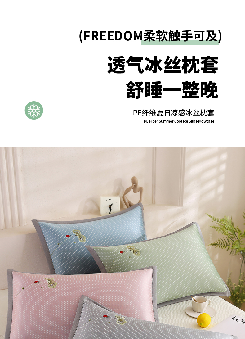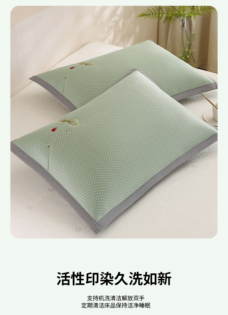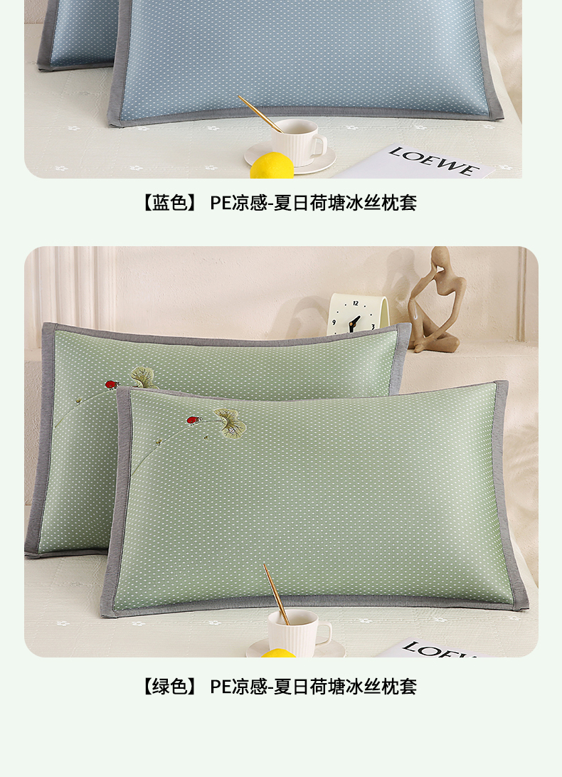 商品名称:(总)小牛席业 2026新款夏日荷塘PE凉感纤维冰丝夏凉枕套单品枕套单件