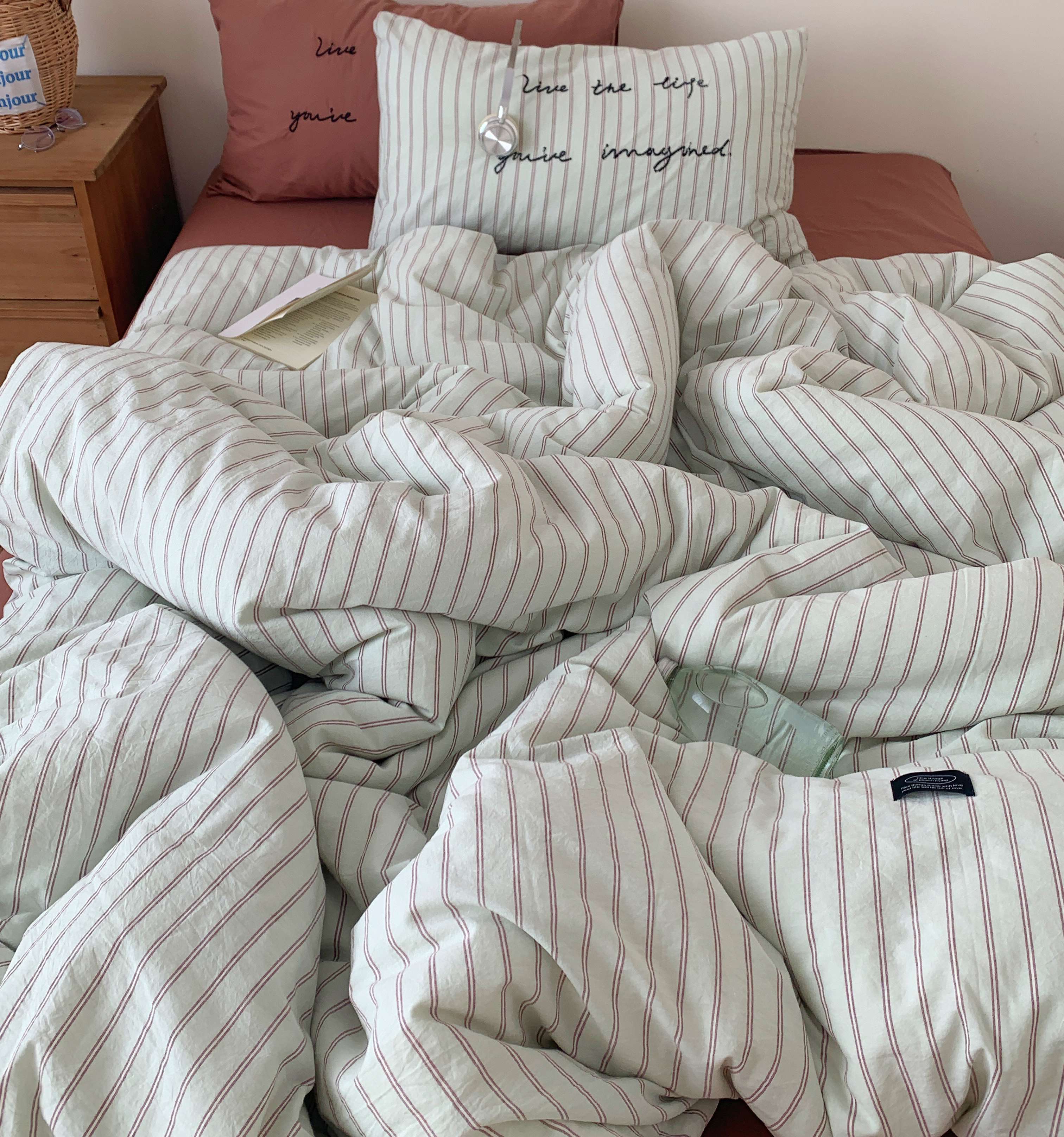 当前位置: 91家纺网 > 商品网购 > 床品套件 > 四件套 > 全棉普通四件套 > 桃喜 2026春夏全棉新品色织水洗棉条纹博主ins风四件套学生三件套(会员-5) 海盐奶盖