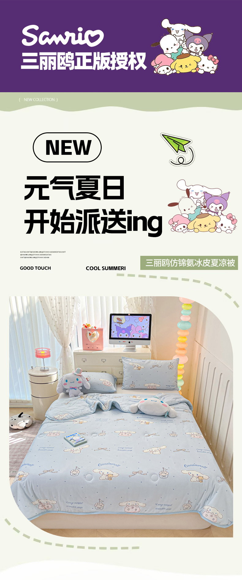 (总)暮思家居 2026新款正版授权A类大版数码印花三丽鸥可组合仿锦氨夏被夏凉被空调被,草莓KT,甜筒KT,豹纹KT猫,草莓美乐蒂,蛋糕美乐蒂,格子KT,公主美乐蒂,蝴蝶结KT,花园美乐蒂,开心玉桂狗,快乐玉桂狗,美美KT,梦幻KT,梦想库洛米,奶油KT,甜蜜库洛米,条纹美乐蒂,晚安玉桂狗,相框美乐蒂,香水KT,小兔美乐蒂,小熊玉桂狗,幸福KT,幸福大耳狗,炫彩库洛米,云朵玉桂狗