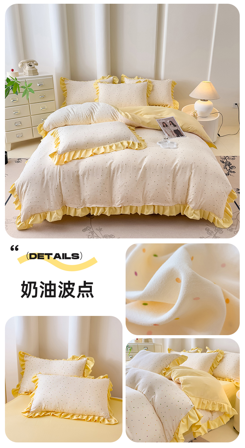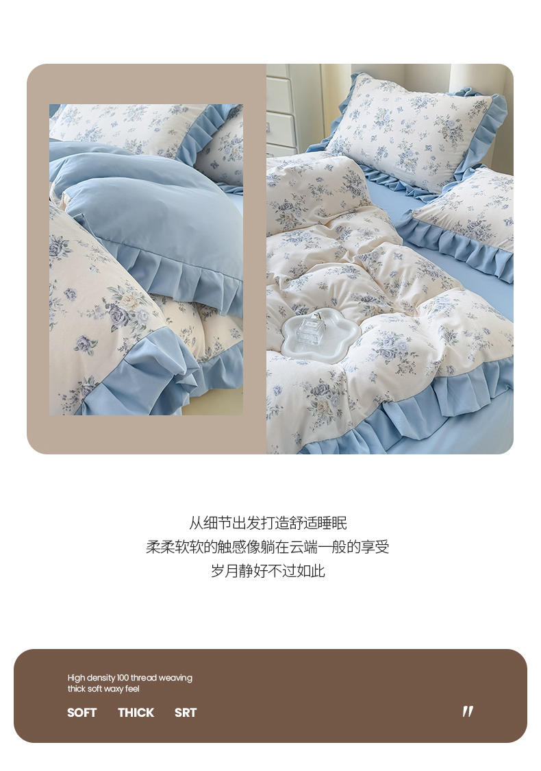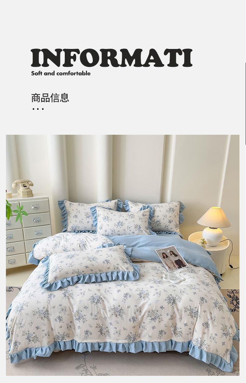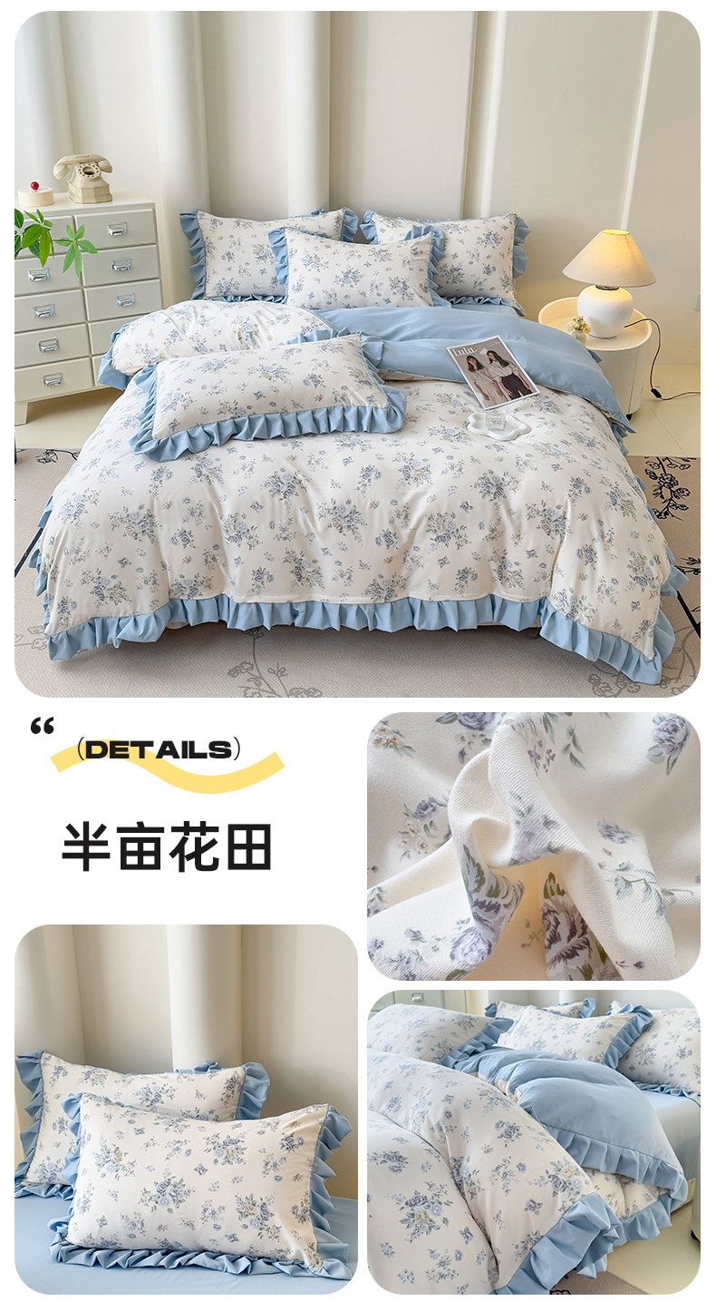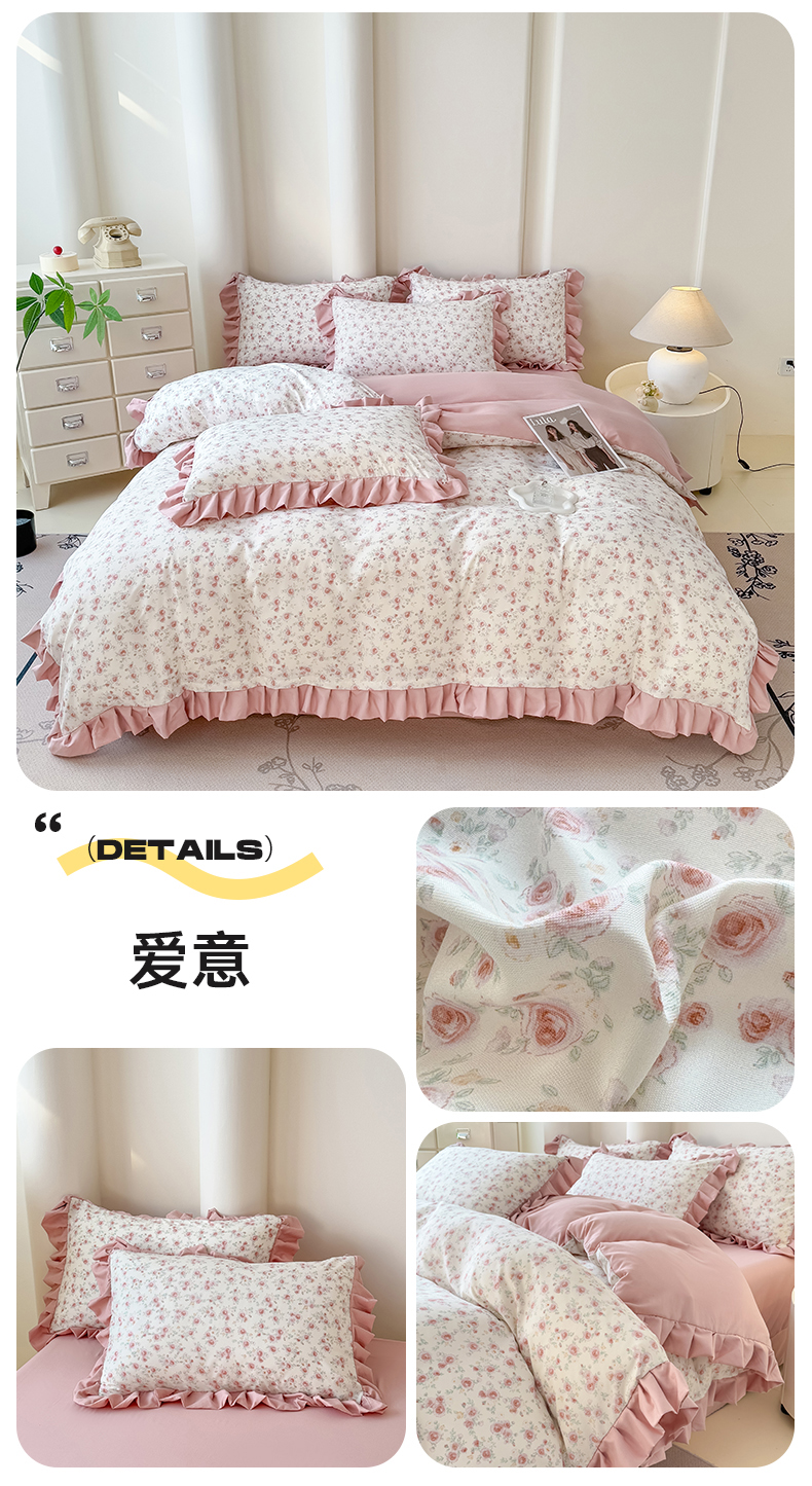 当前位置: 91家纺网 > 商品网购 > 床品套件 > 四件套 > 其它四件套 > 晚爱家纺(原晚安家居) 2026韩版花边四件套 有氧针织双层纱天竺棉超柔小清新四件套 花漾年华
