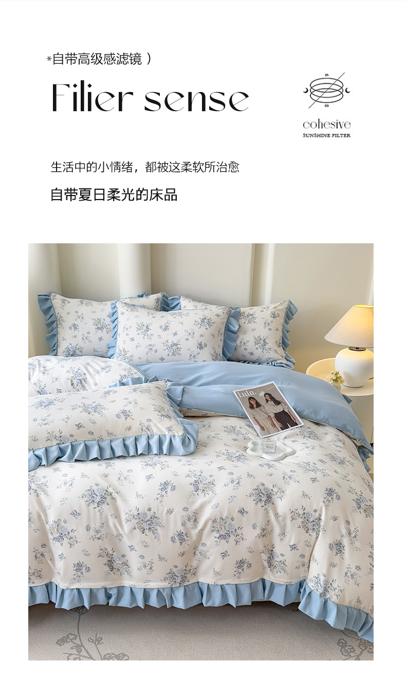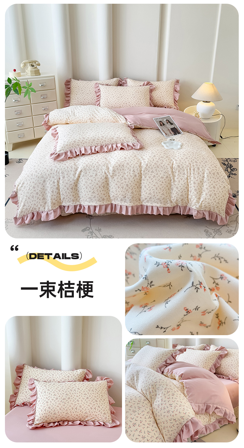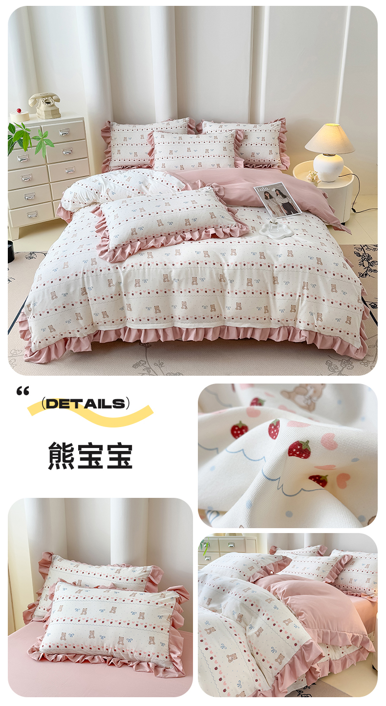 当前位置: 91家纺网 > 商品网购 > 床品套件 > 四件套 > 其它四件套 > 晚爱家纺(原晚安家居) 2026韩版花边四件套 有氧针织双层纱天竺棉超柔小清新四件套 闲趣