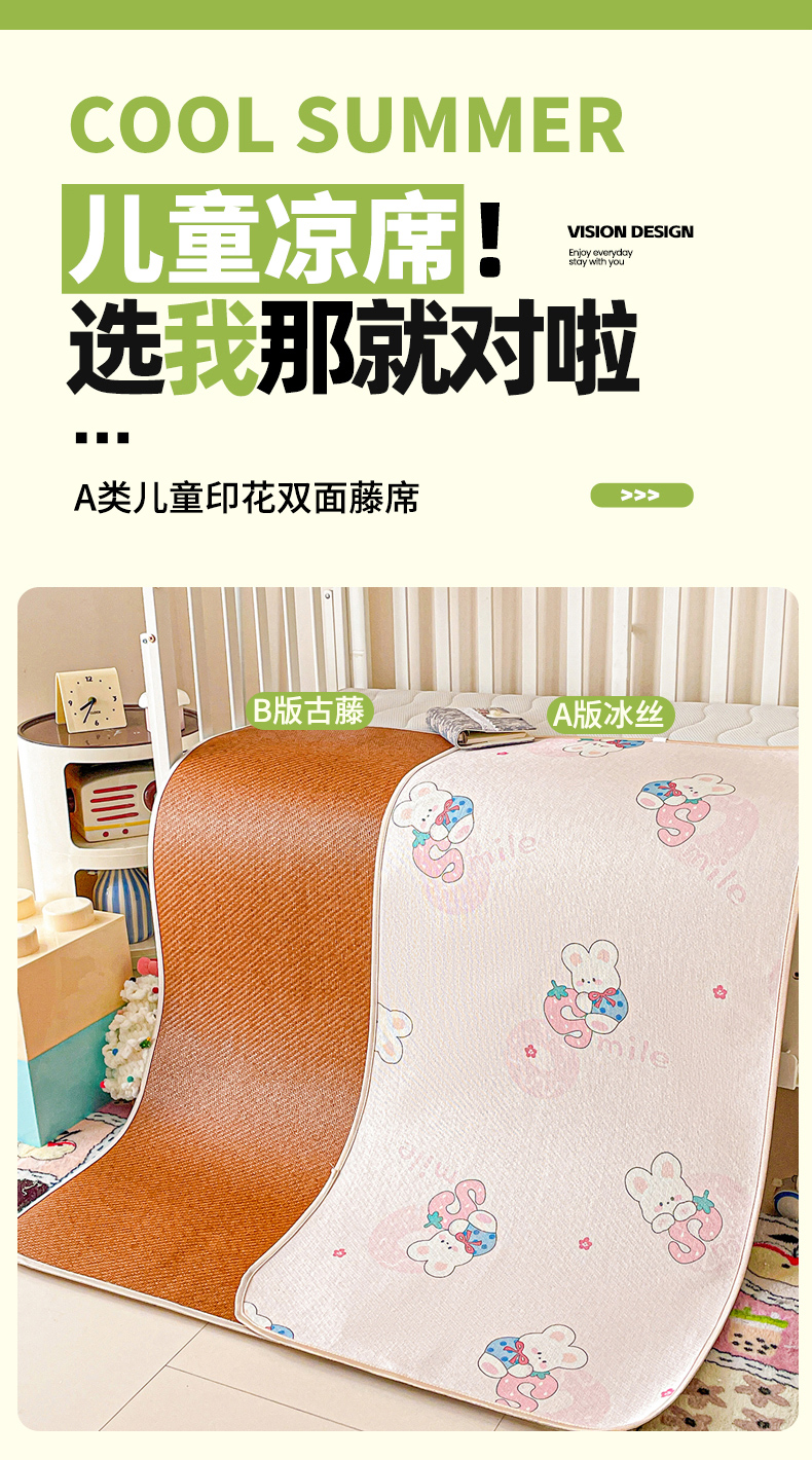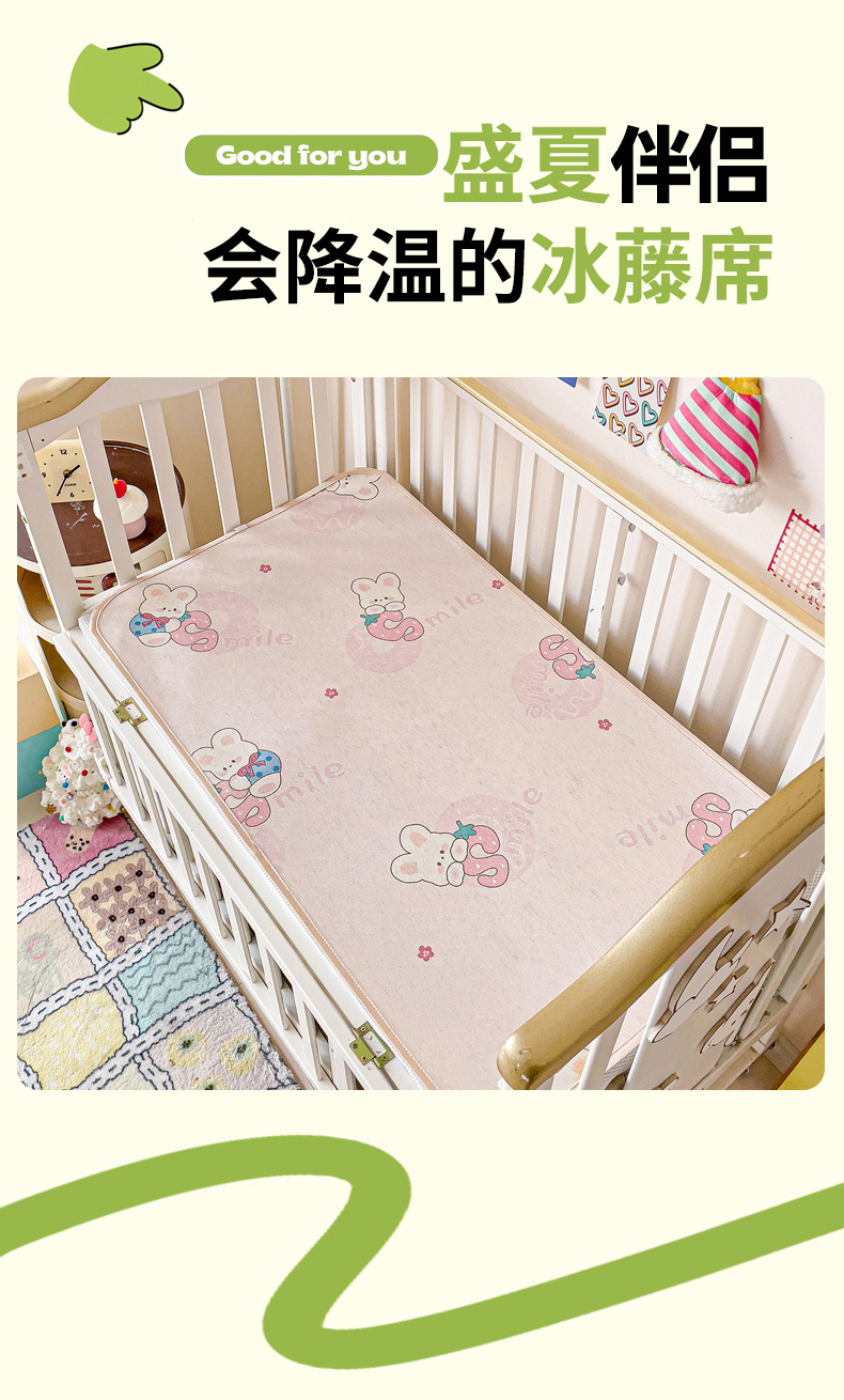 当前位置: 91家纺网 > 商品网购 > 床上用品 > 凉席 > 冰丝席 > 富馨莱 2026新款幼儿园古藤席冰丝席双面可用儿童凉席双面凉感 糖果兔