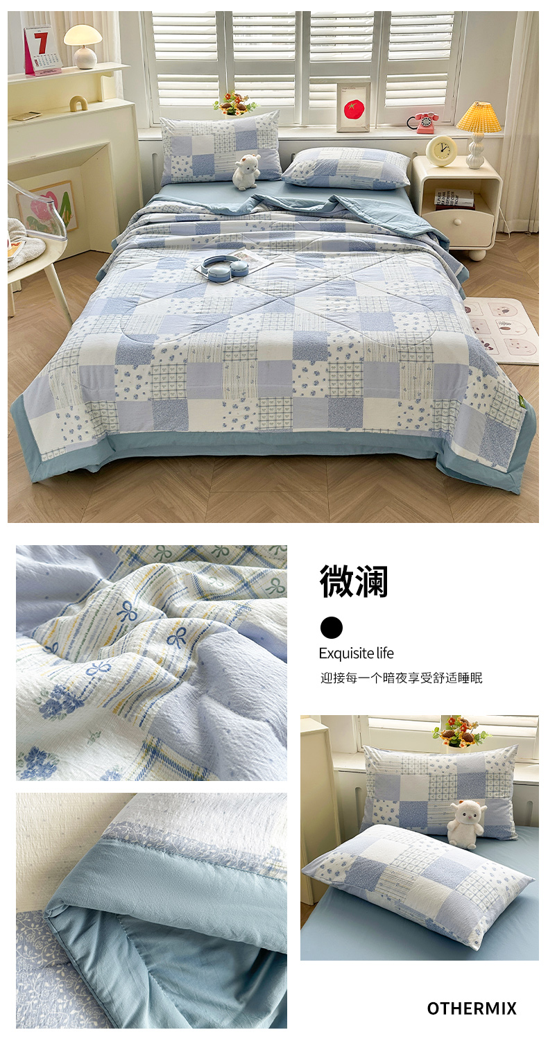 (总)美梦里 2025春夏新款A类云母凉感夏被夏凉被空调被--幸运多,幸运多-粉色,幸运多-茶灰色,幸运多-蓝色,幸运多-绿色,幸运多-天蓝