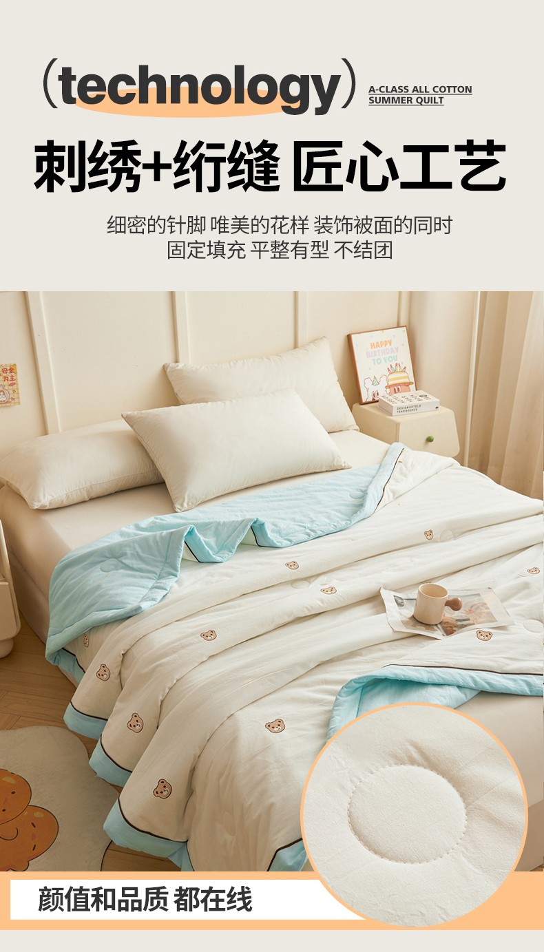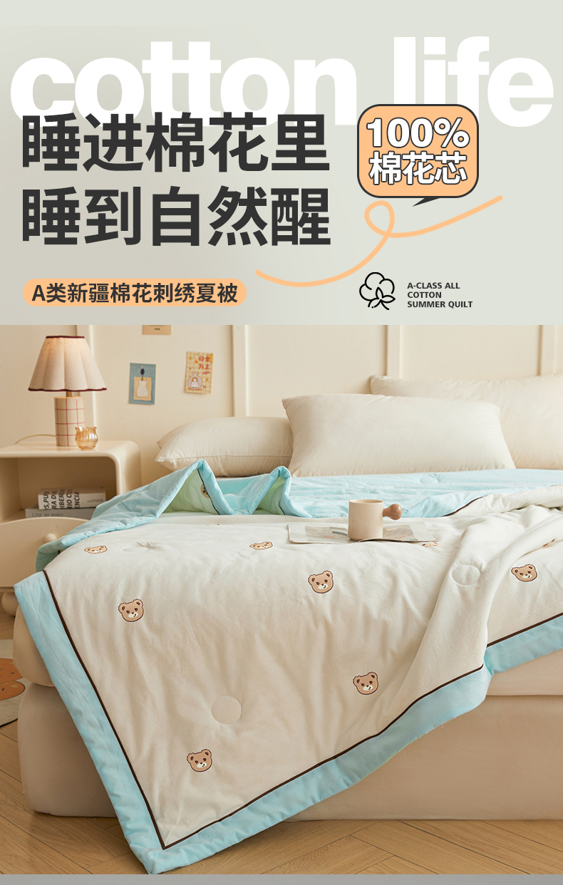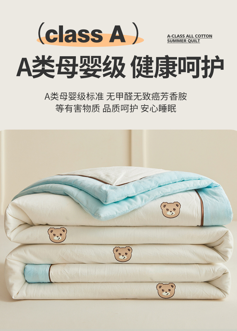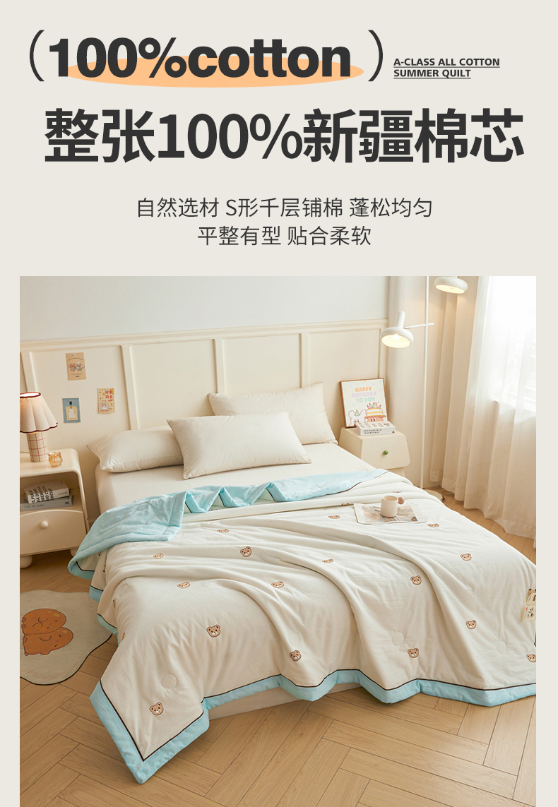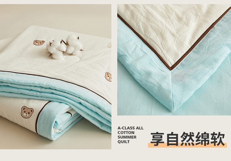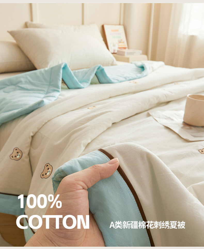 仁凯家纺 2026新款A类100%棉花刺绣款手包边夏被夏凉被空调被 安妮熊-蓝