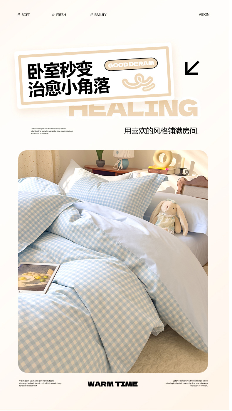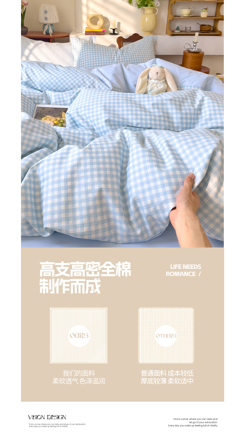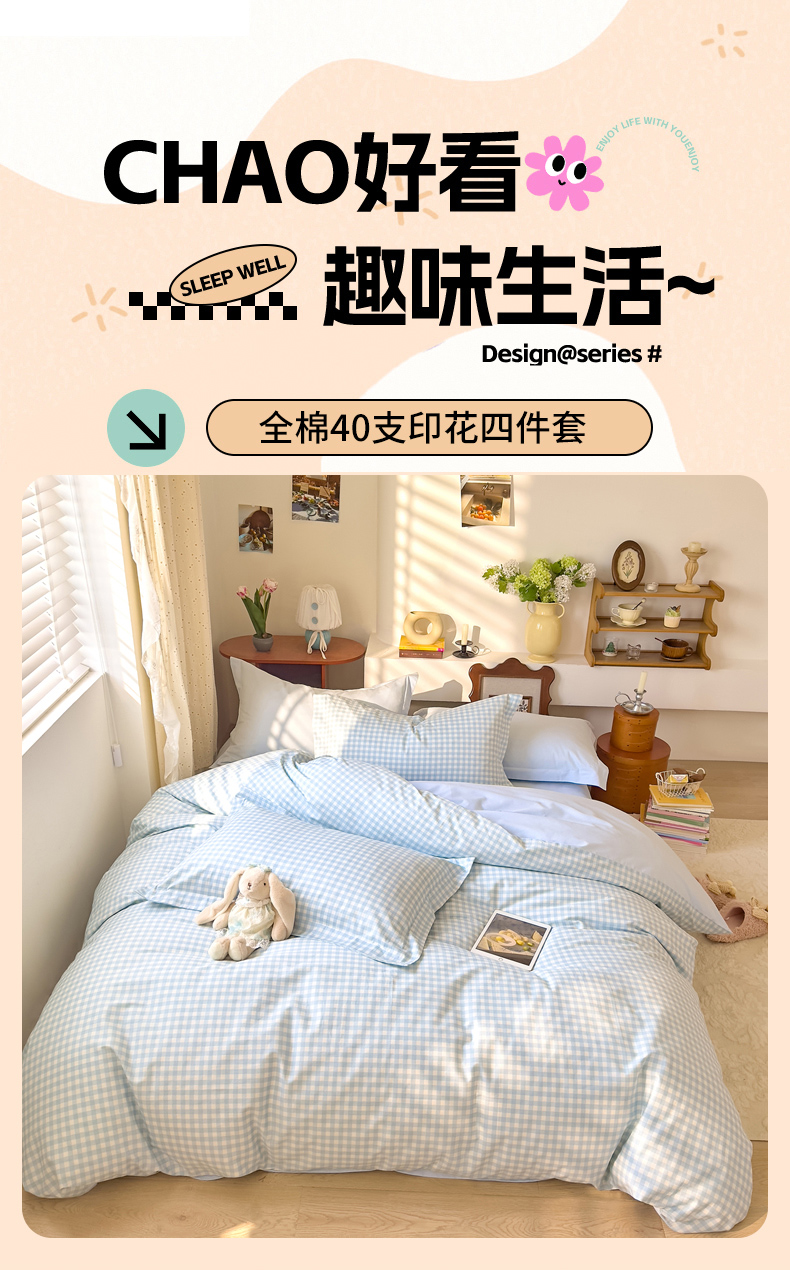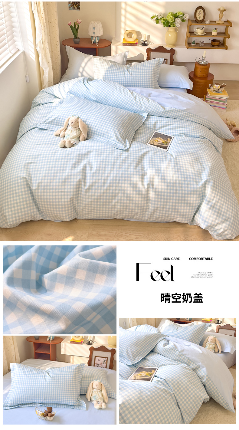 当前位置: 91家纺网 > 商品网购 > 床品套件 > 四件套 > 全棉普通四件套 > DoDo 兜兜 2026年全棉纯棉ins风小清新四件套 晴空奶盖-枕套1对格子