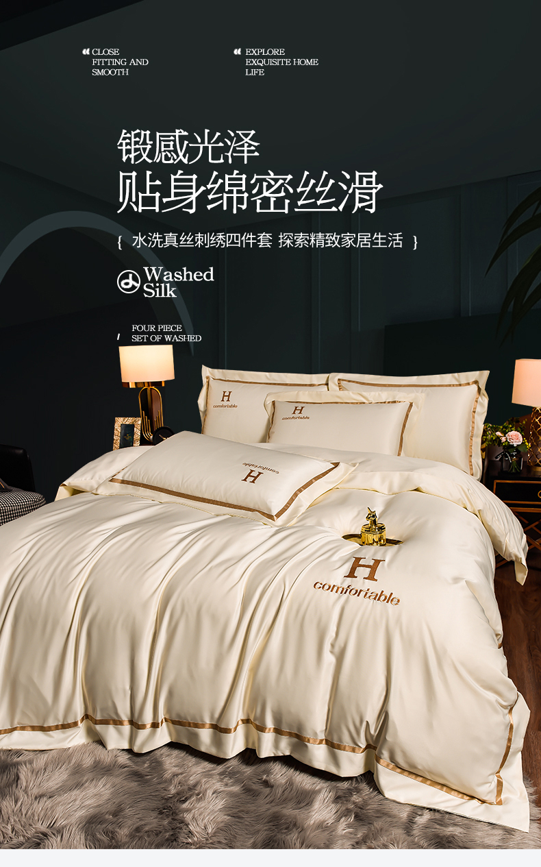 当前位置: 91家纺网 > 商品网购 > 床品套件 > 四件套 > 化纤普通四件套 > 首尔家纺 2026新款水洗真丝绣花四件套H系列 H-魔法金