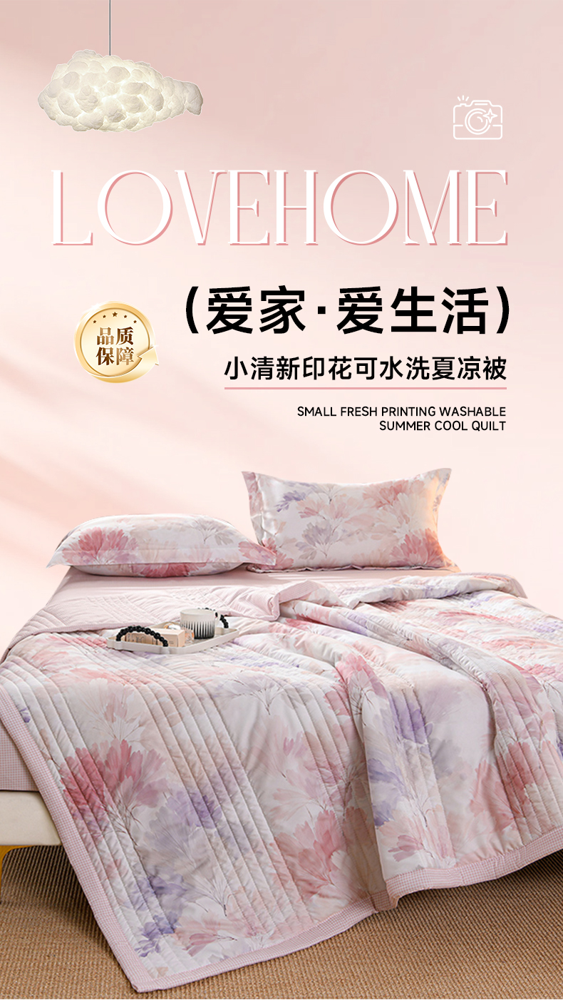 圣靓家纺 2026新款清新水洗夏被被子被芯 花语-粉