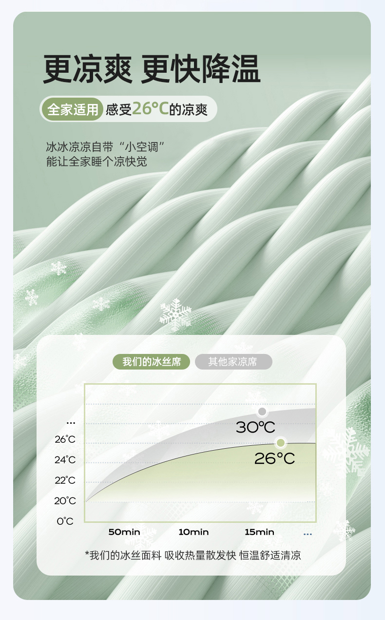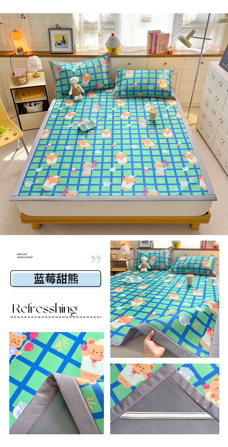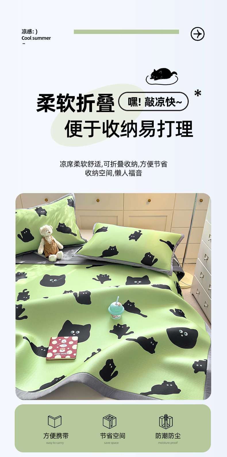 圣比熊 2026新款烫光数码印花冰丝凉席 薄荷喵星