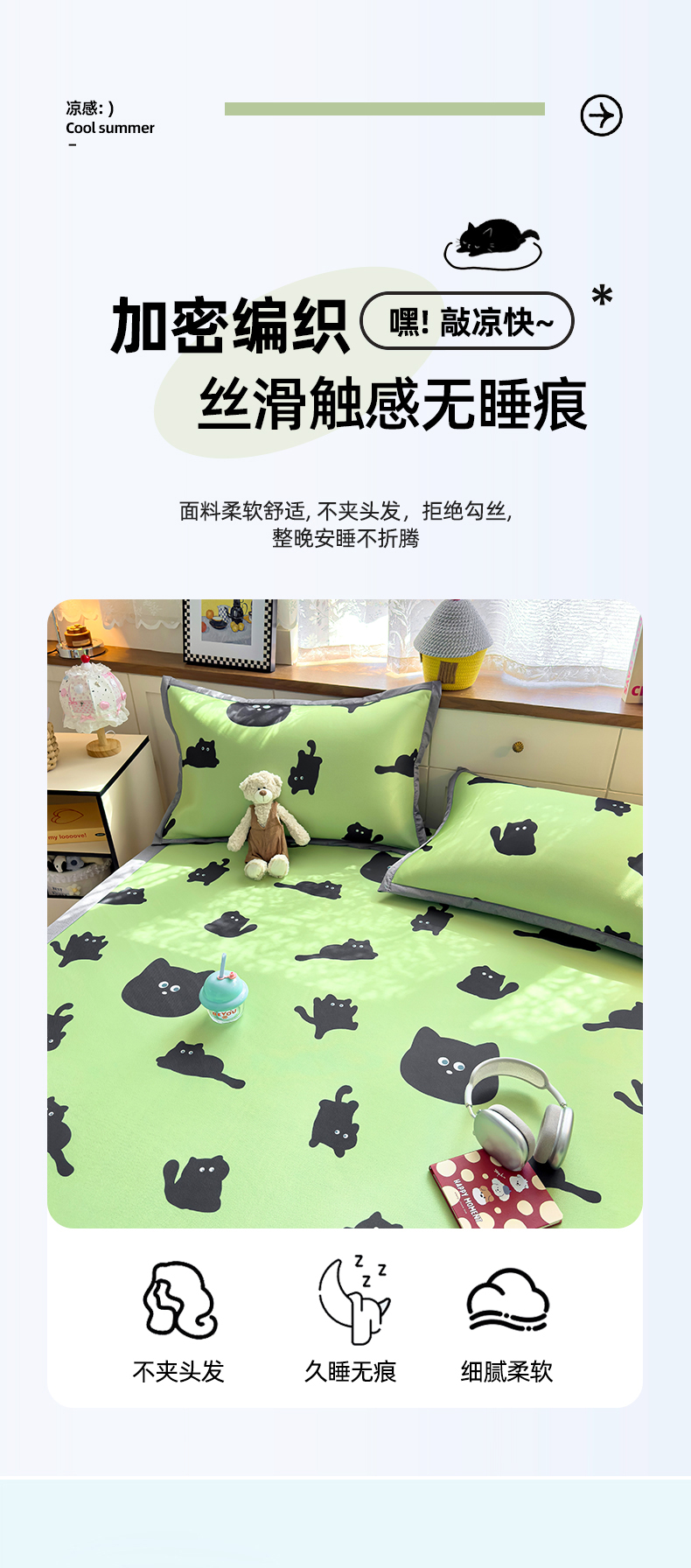 商品名称:圣比熊 2026新款烫光数码印花冰丝凉席 薄荷喵星