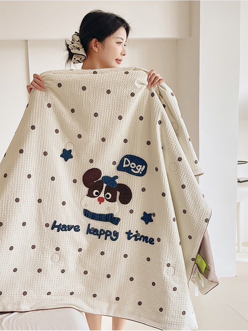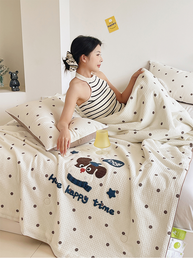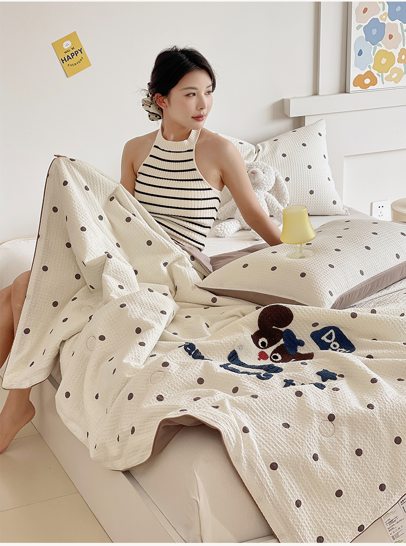 莱宁被业 2026新款A类全棉华夫格提花毛巾绣卡通大豆夏被 圆点小狗