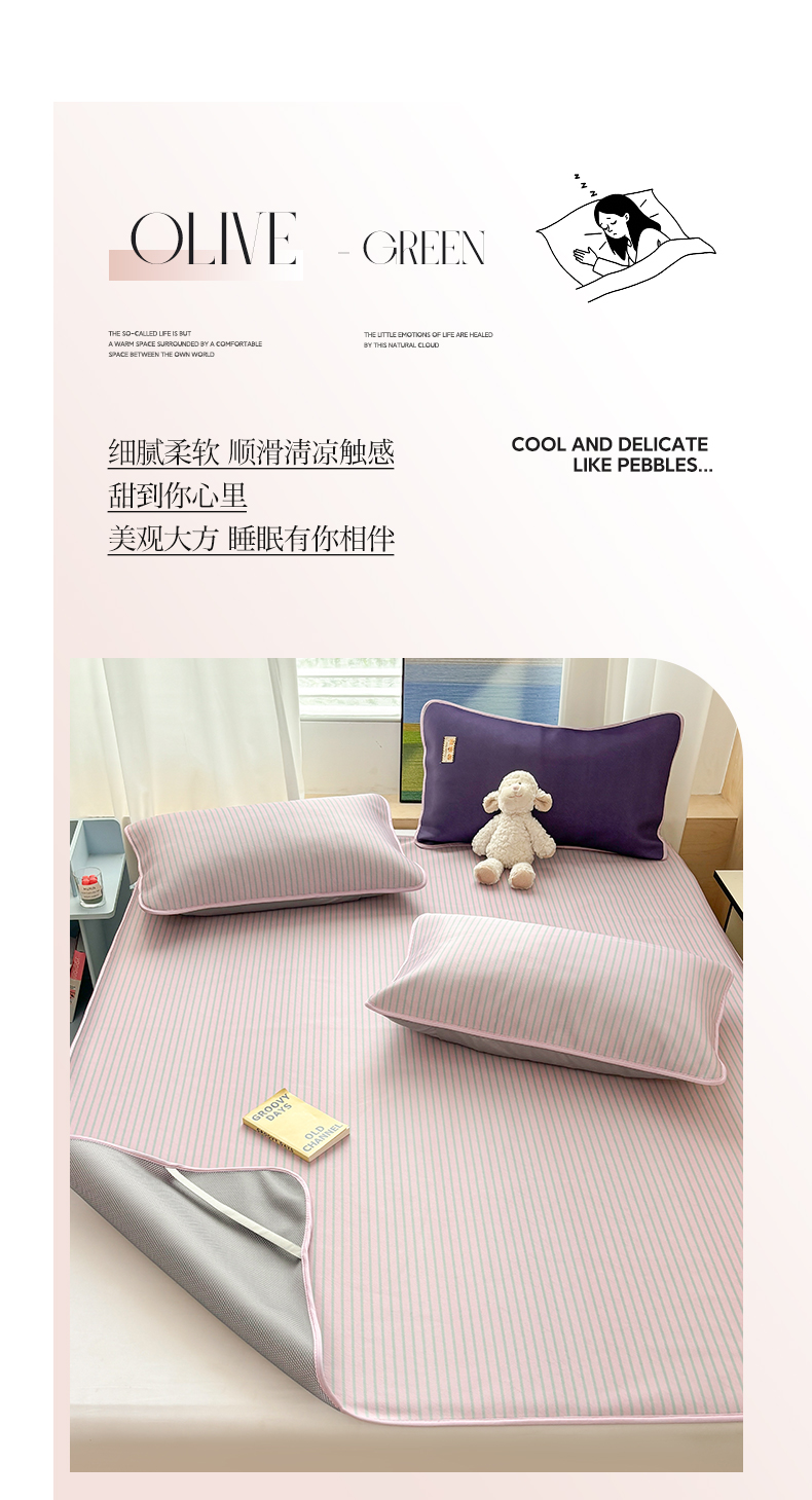 商品名称:(总)雅居纺家纺 2026新款简约条纹系列凉席牛奶丝三明治底冰丝凉席