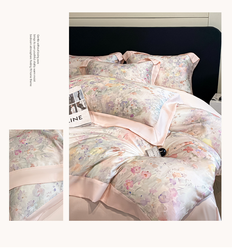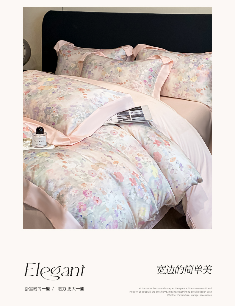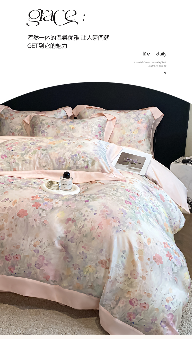 (总)博纳家纺 2026新款天丝莱塞尔轻奢高端数码印花拼角宽边夏被四件套冰感凉感四件套--夏洛伊系列,柏林春诗,春亭序,漫枝,绮梦,蔷薇庄园,夏洛伊
