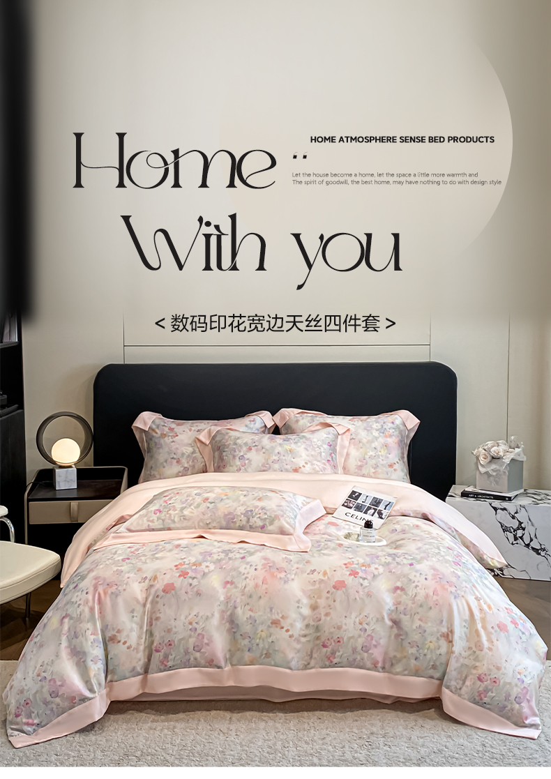 (总)博纳家纺 2026新款数码印花天丝宽边四件套,半夏,花舞蝶,卡罗拉,流光-粉,流光-天蓝,塞纳