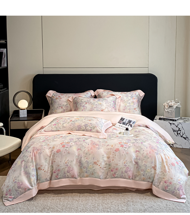商品名称:博纳家纺 2026新款天丝莱塞尔轻奢高端数码印花拼角宽边夏被四件套冰感凉感四件套--夏洛伊系列 夏洛伊