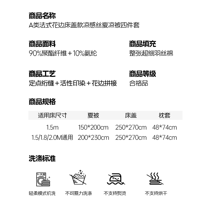 150x200cm单夏被+床盖+枕套一对 | ¥160.00 |