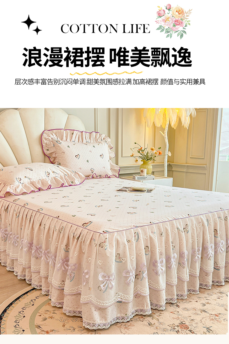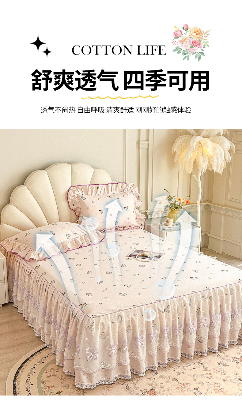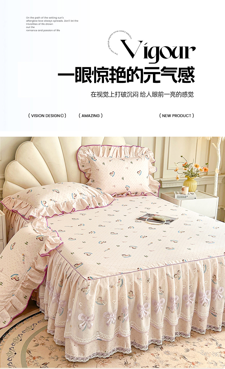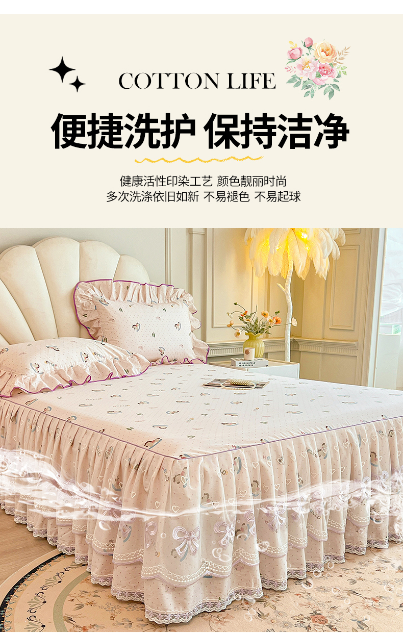 当前位置: 91家纺网 > 商品网购 > 床品套件 > 三件套 > 宜凡家纺 2026新款全棉公主风单层床裙三件套② 摇摇木马