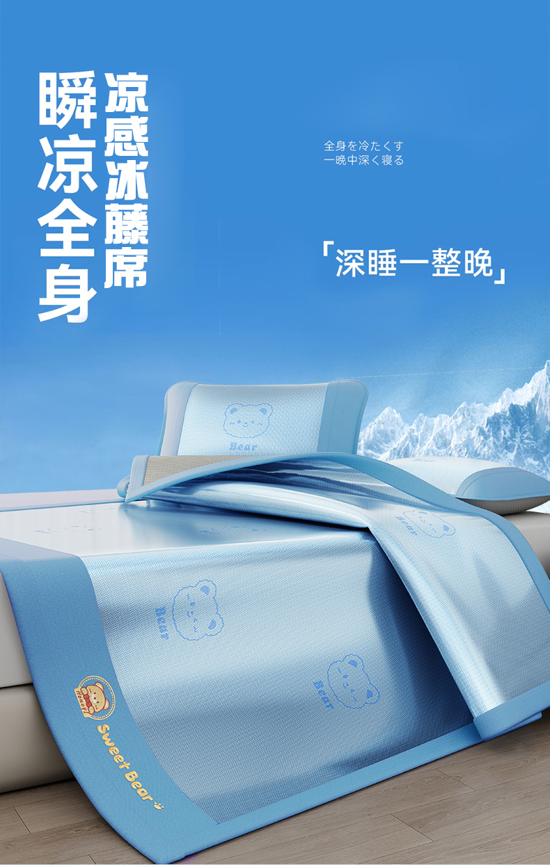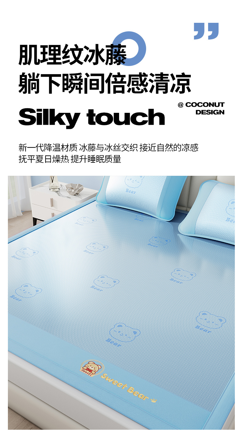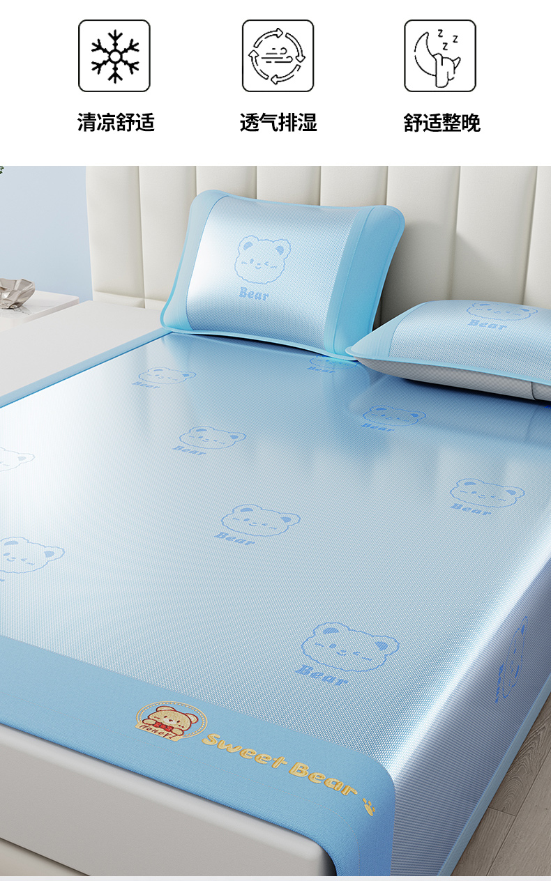 当前位置: 91家纺网 > 商品网购 > 床上用品 > 凉席 > 凉席套件 > 梵克保罗 2026新款3D复合三明治冰藤冰丝凉席套件-甜蜜小熊 甜蜜小熊-蓝色
