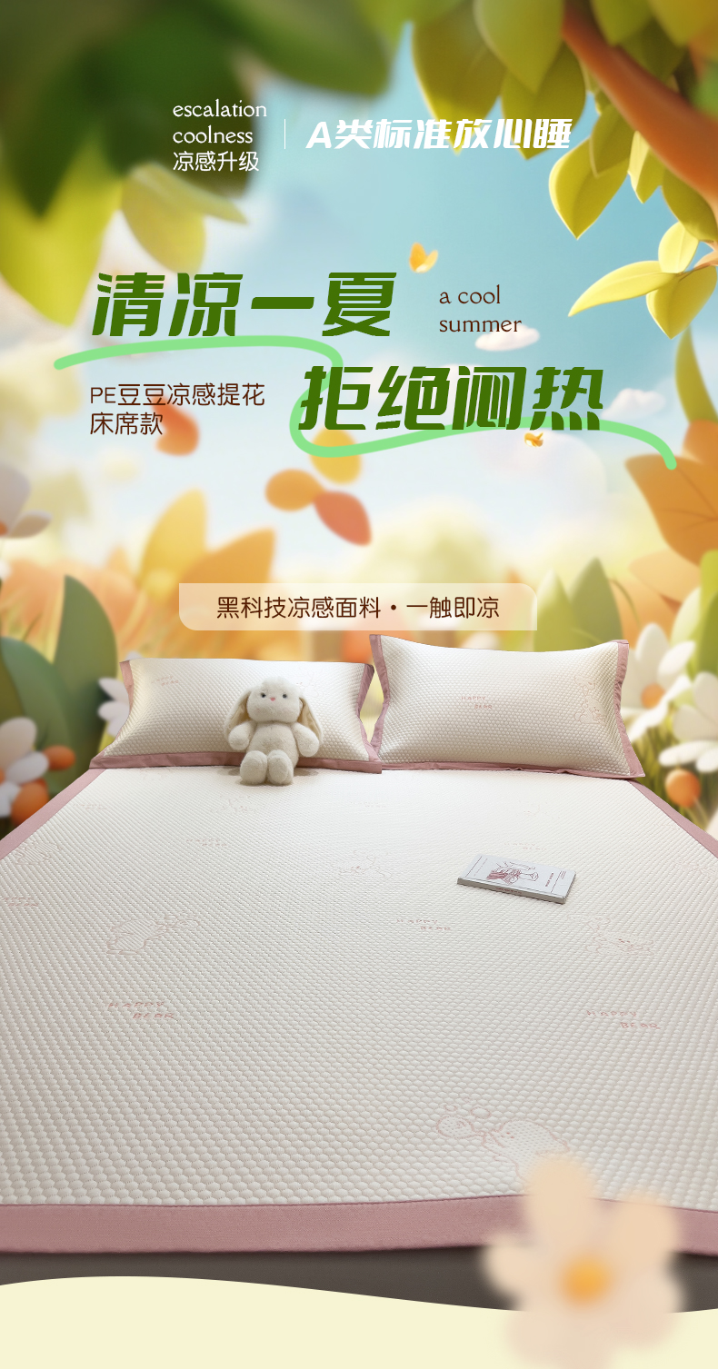 (总)倾慕家纺 2026新款PE时尚风豆豆凉席卡通系列--床席款