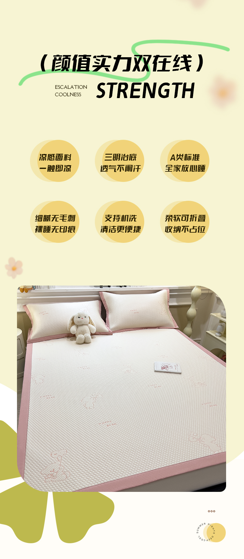 商品名称:(总)倾慕家纺 2026新款PE时尚风豆豆凉席卡通系列--床席款