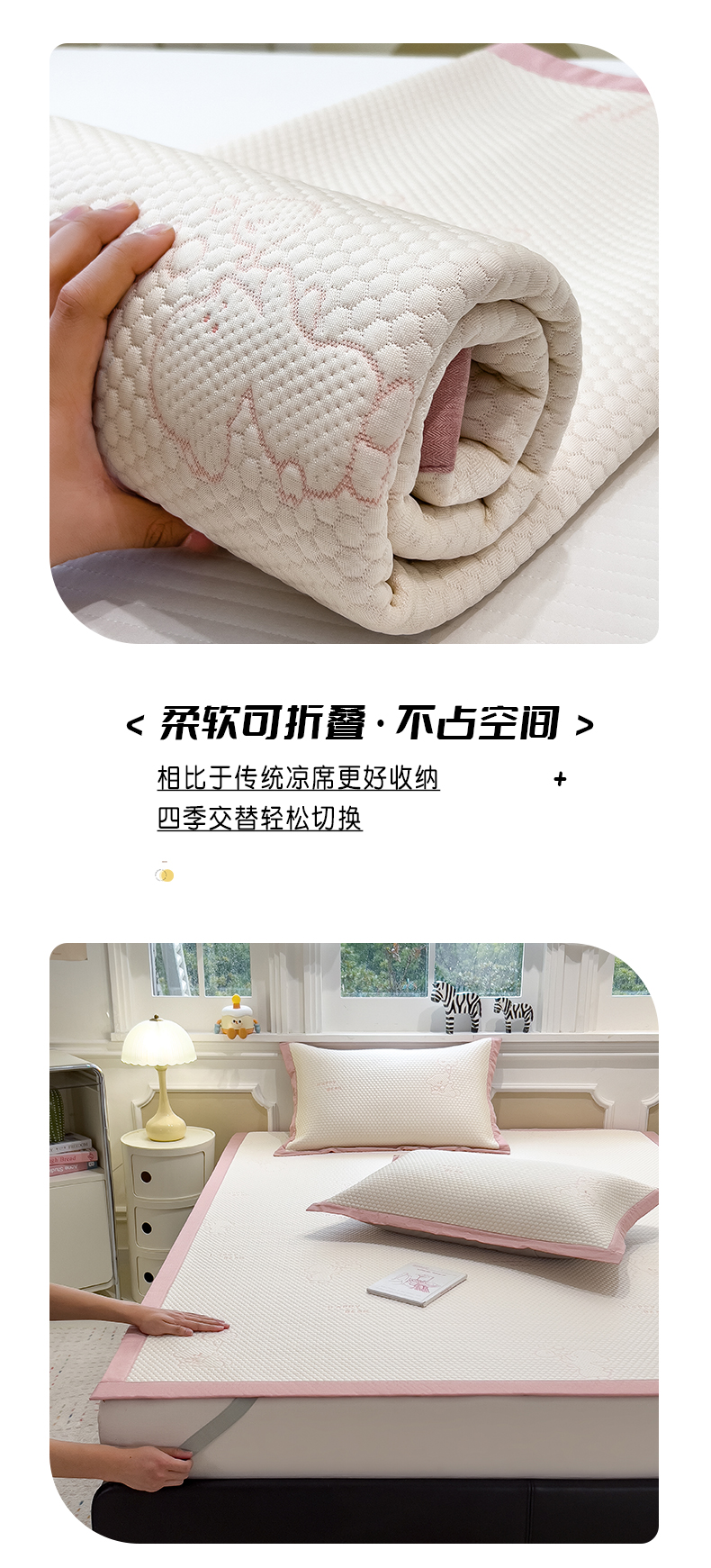 (总)倾慕家纺 2026春夏新款A类印花小冰皮软席凉席席子,组合图仅供展示不可下单,豹猫粉,豹猫蓝,贝壳鲸鱼,冰雪企鹅,蛋糕小兔,云朵小马