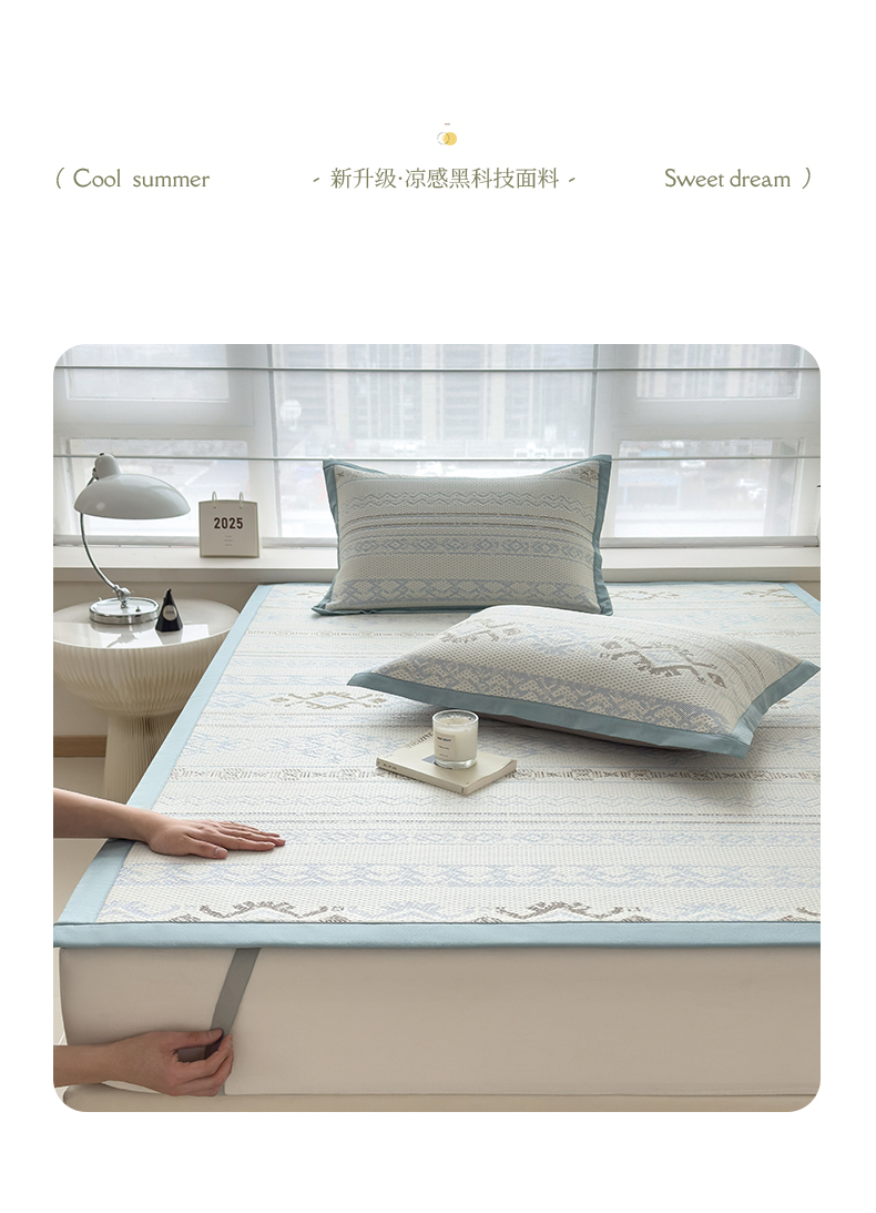 (总)倾慕家纺 2026新款PE50提花凉感冰丝凉席,花星点点粉,花星点点灰,花星点点绿,简蝶粉,简蝶蓝,叶繁粉,叶繁灰,叶繁蓝,叶繁绿,针叶粉,针叶蓝,针叶绿,组合
