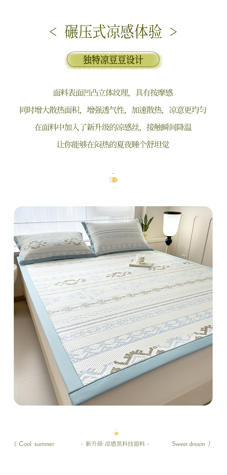 (总)倾慕家纺 2026春夏新款全PE冰豆豆全包围床笠款凉席席子,箭纹粉,箭纹灰,箭纹卡其,箭纹蓝,箭纹绿,箭纹米白,菱形泡粉,菱形泡灰,菱形泡蓝,菱形泡绿,菱形泡米白,菱形泡香槟