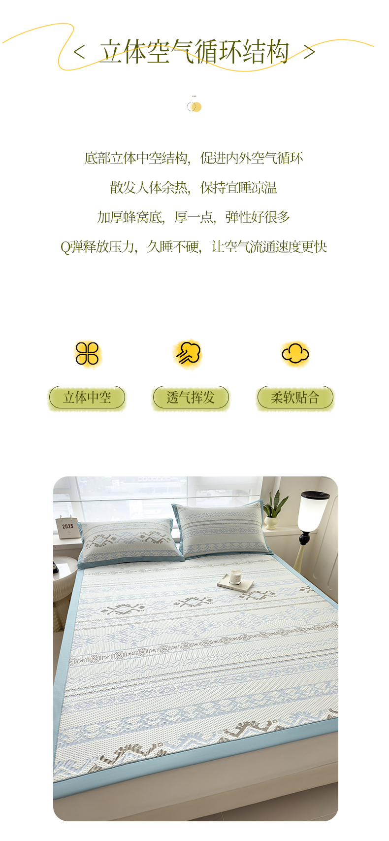 (总)倾慕家纺 2026新款PE时尚风豆豆凉席花卉系列--床席款
