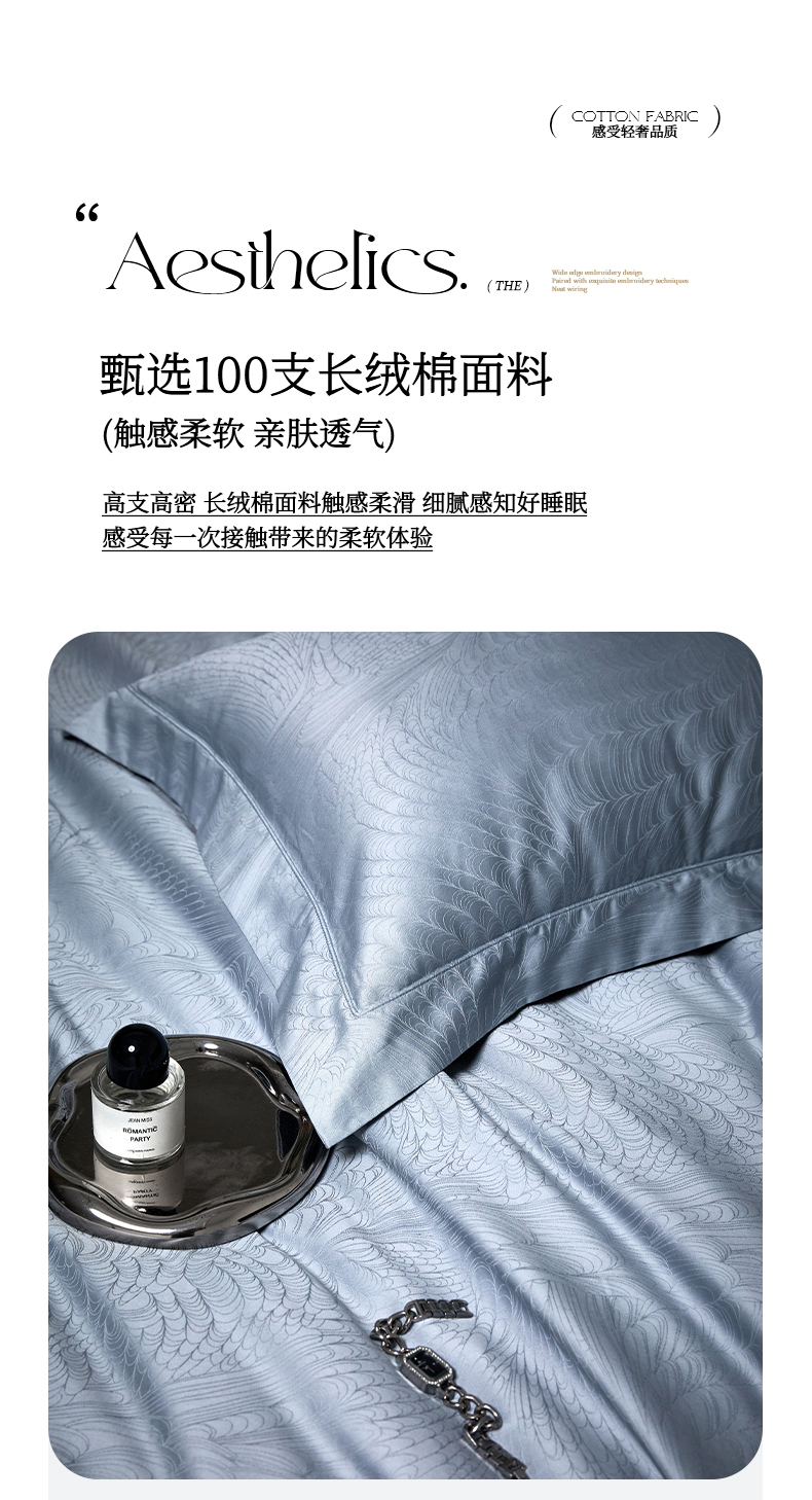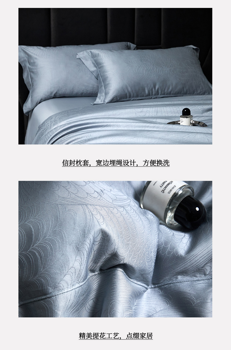 总榻尚家居 2023新款格瑞斯系列100贡缎长绒棉四件套工艺款四件套,格瑞斯紫,格瑞斯白,格瑞斯灰,格瑞斯蓝