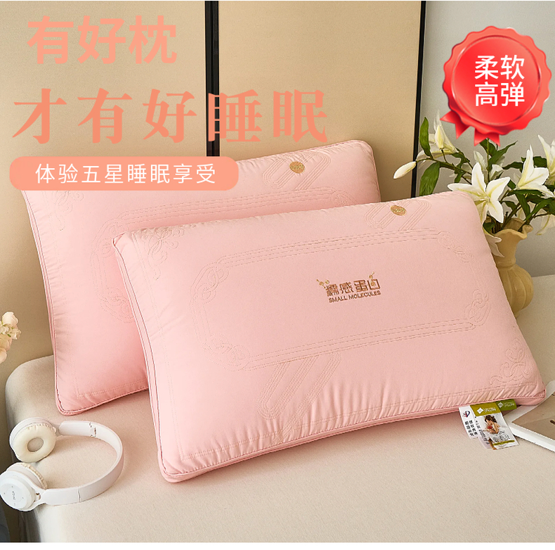 商品名称:梦叶草 2026新款糯感蛋白深睡枕头护颈枕芯 糯感枕芯-粉色