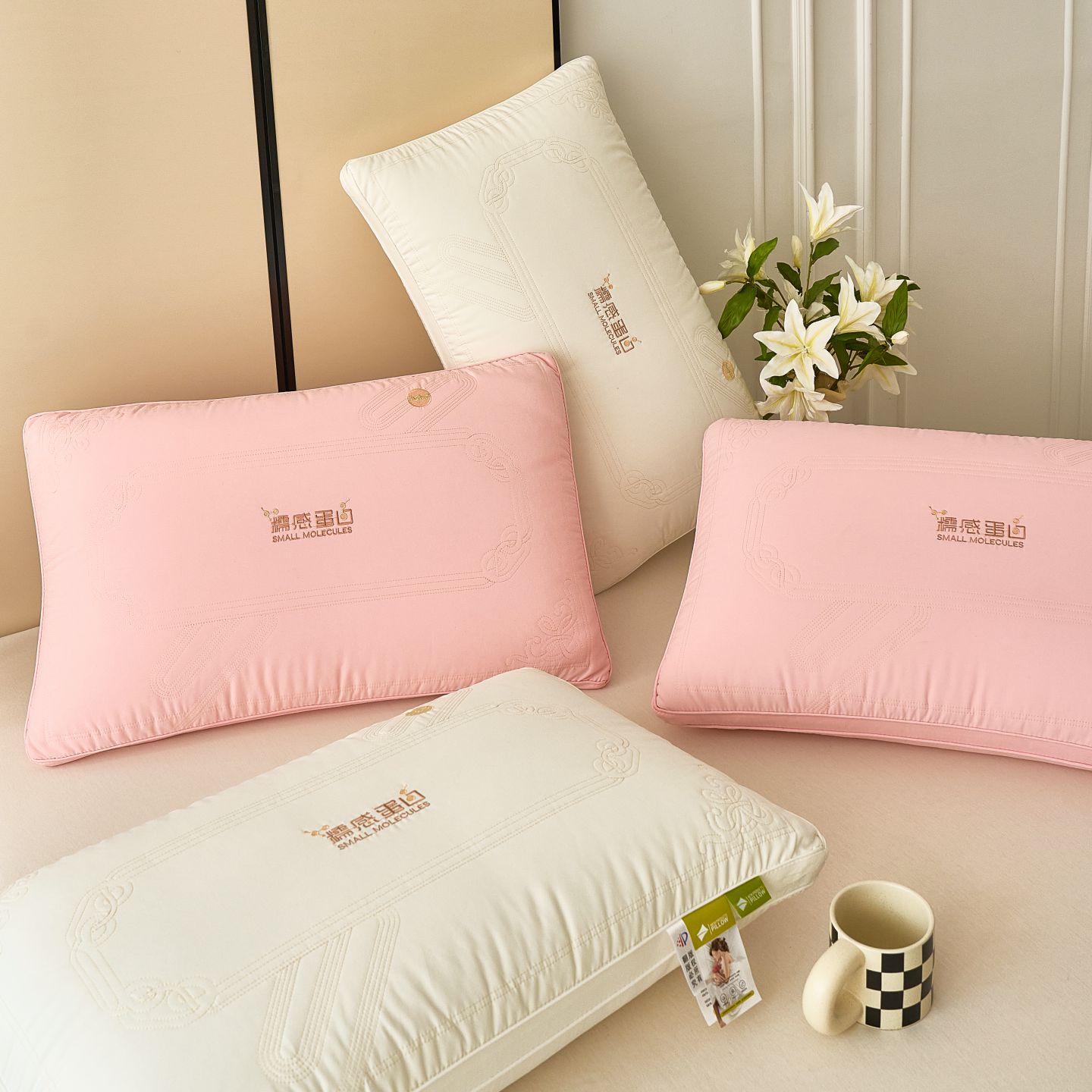 (总)梦叶草 2026新款低调生活简约灰白护颈枕头枕芯,组合图仅供参考不可下单,低调生活-咖色,低调生活-米色