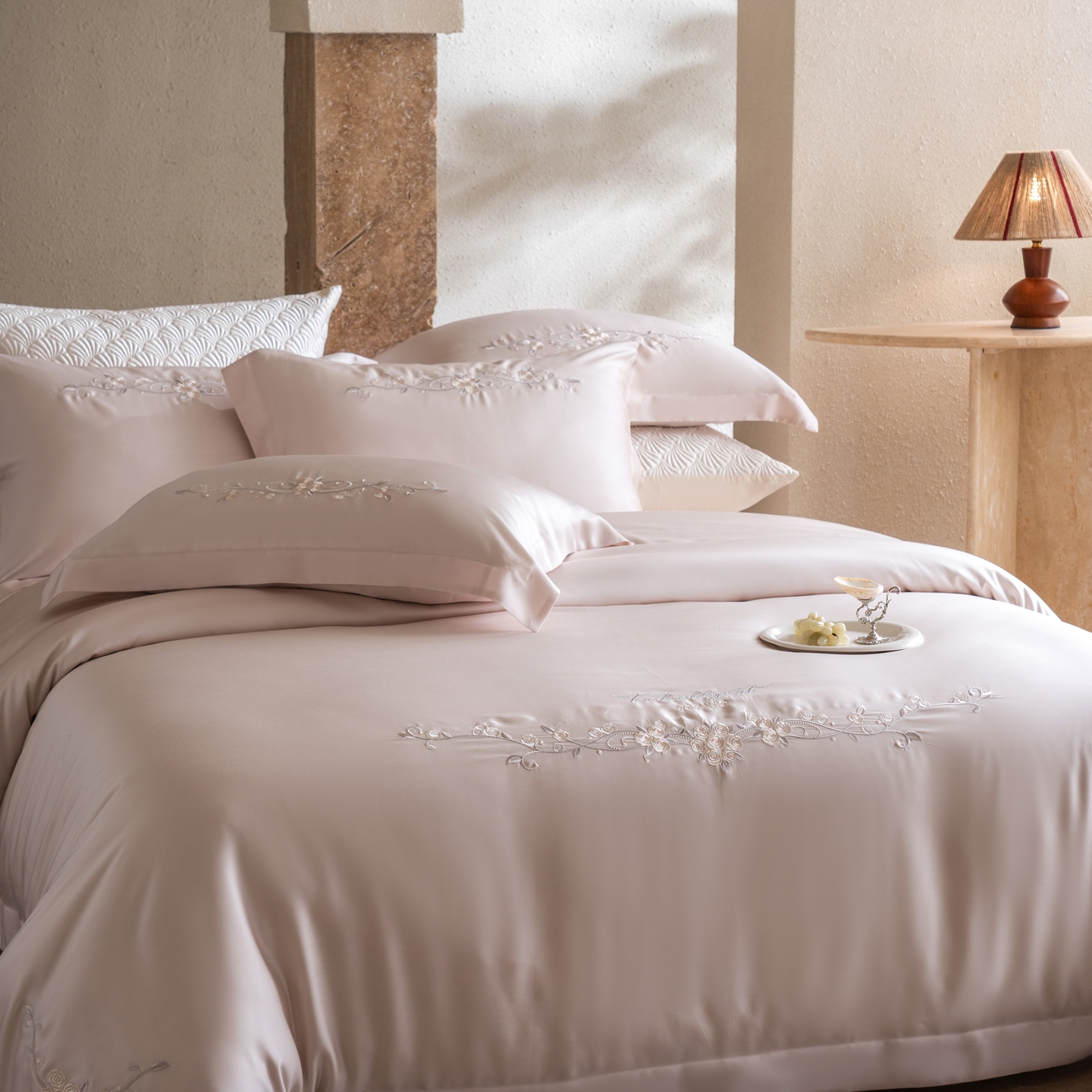 (总)时亿家居 2026春夏新款兰精天丝四件套-黑樱梦境,白,粉,灰色,蓝,香槟,紫色