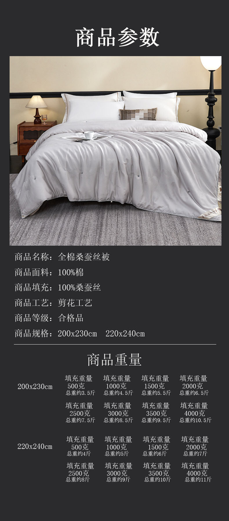 春秋2.2x2.4桑蚕丝填充4斤/总重7斤