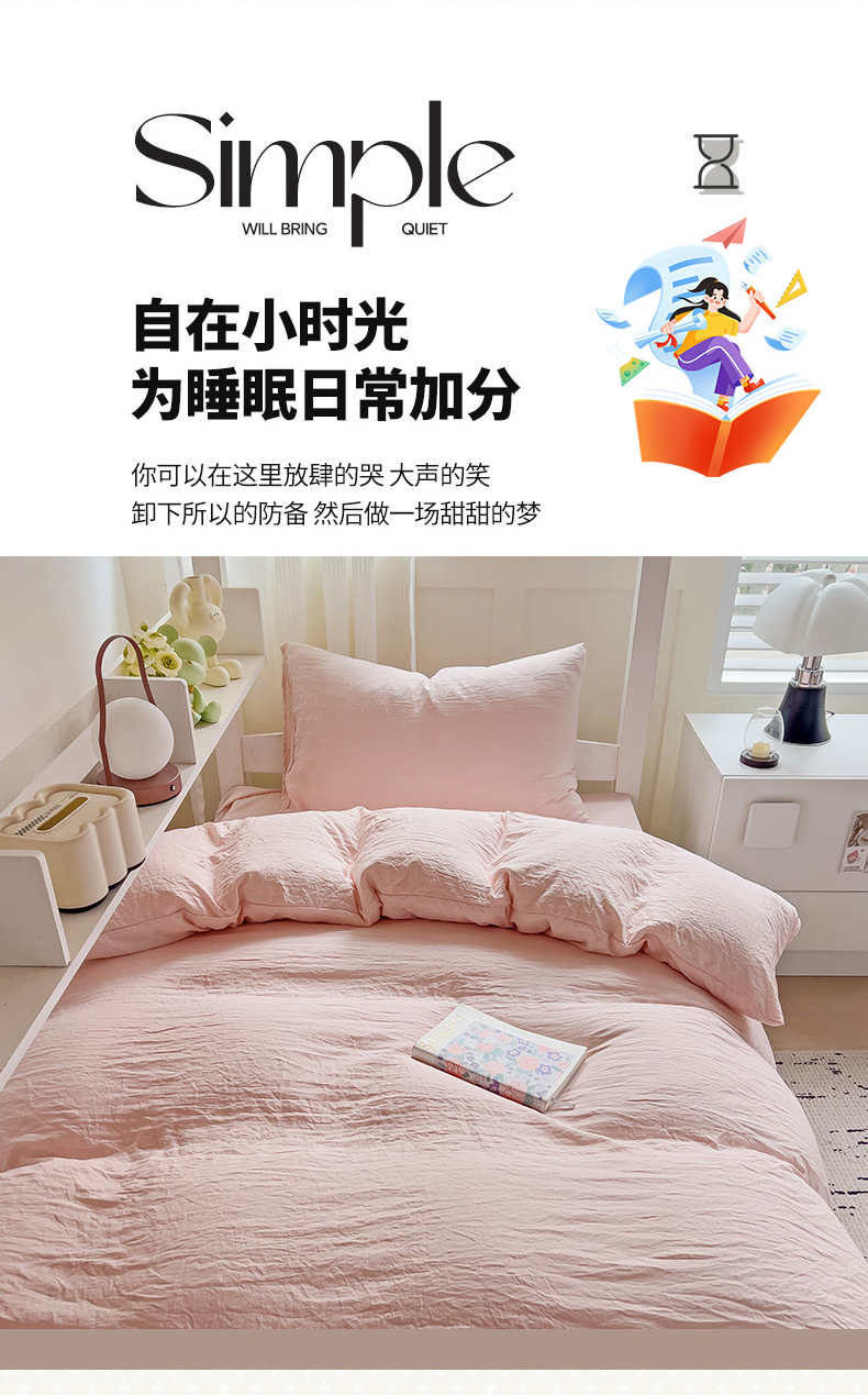 当前位置: 91家纺网 > 商品网购 > 床品套件 > 四件套 > 水洗棉四件套 > 欧妮家纺 2025新款纯色水洗棉四件套学生宿舍床单被套三件套床上用品-【含买家秀】 纯色-浅粉