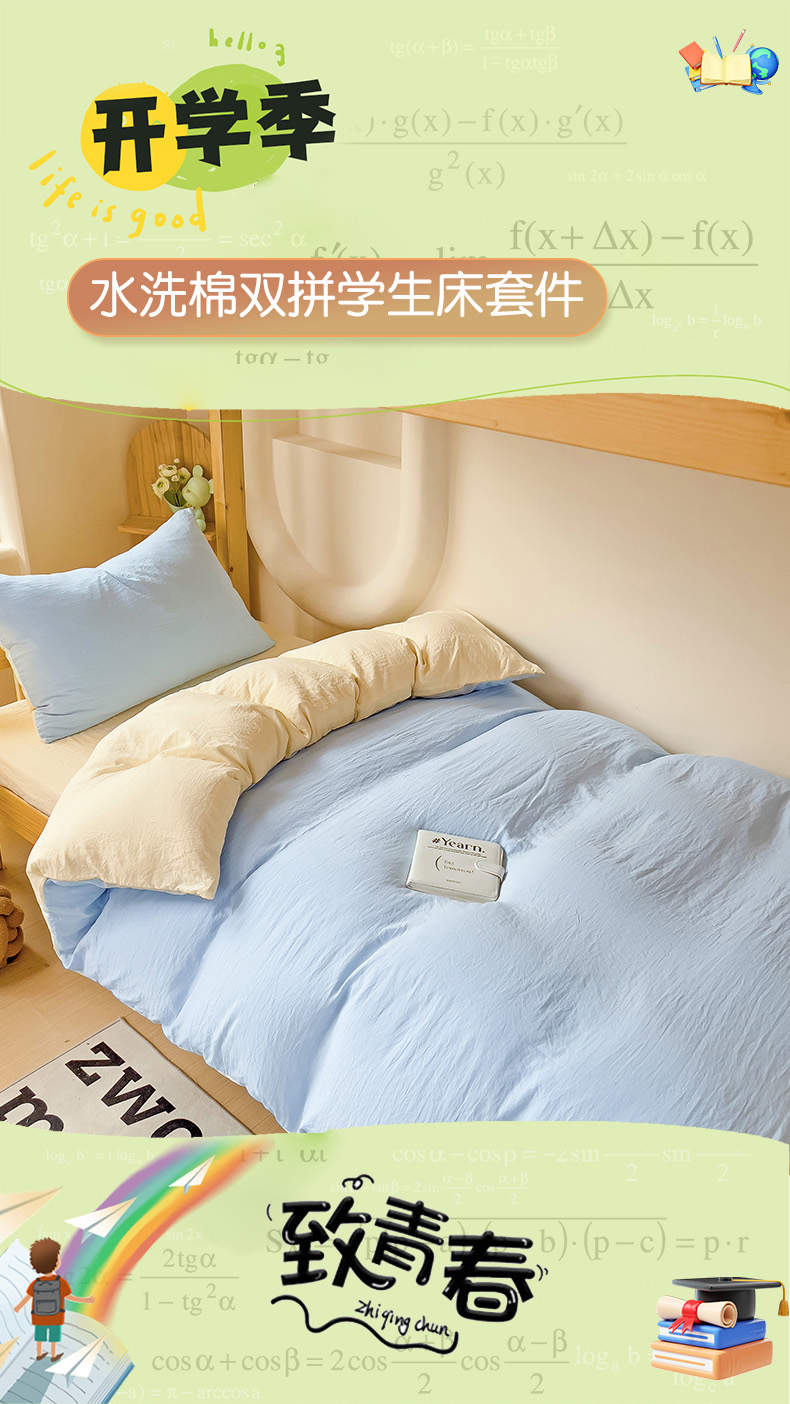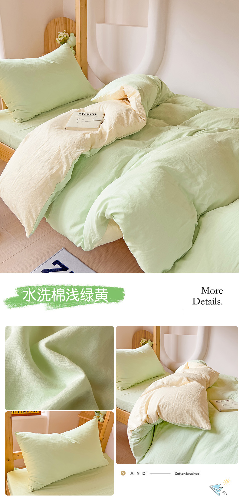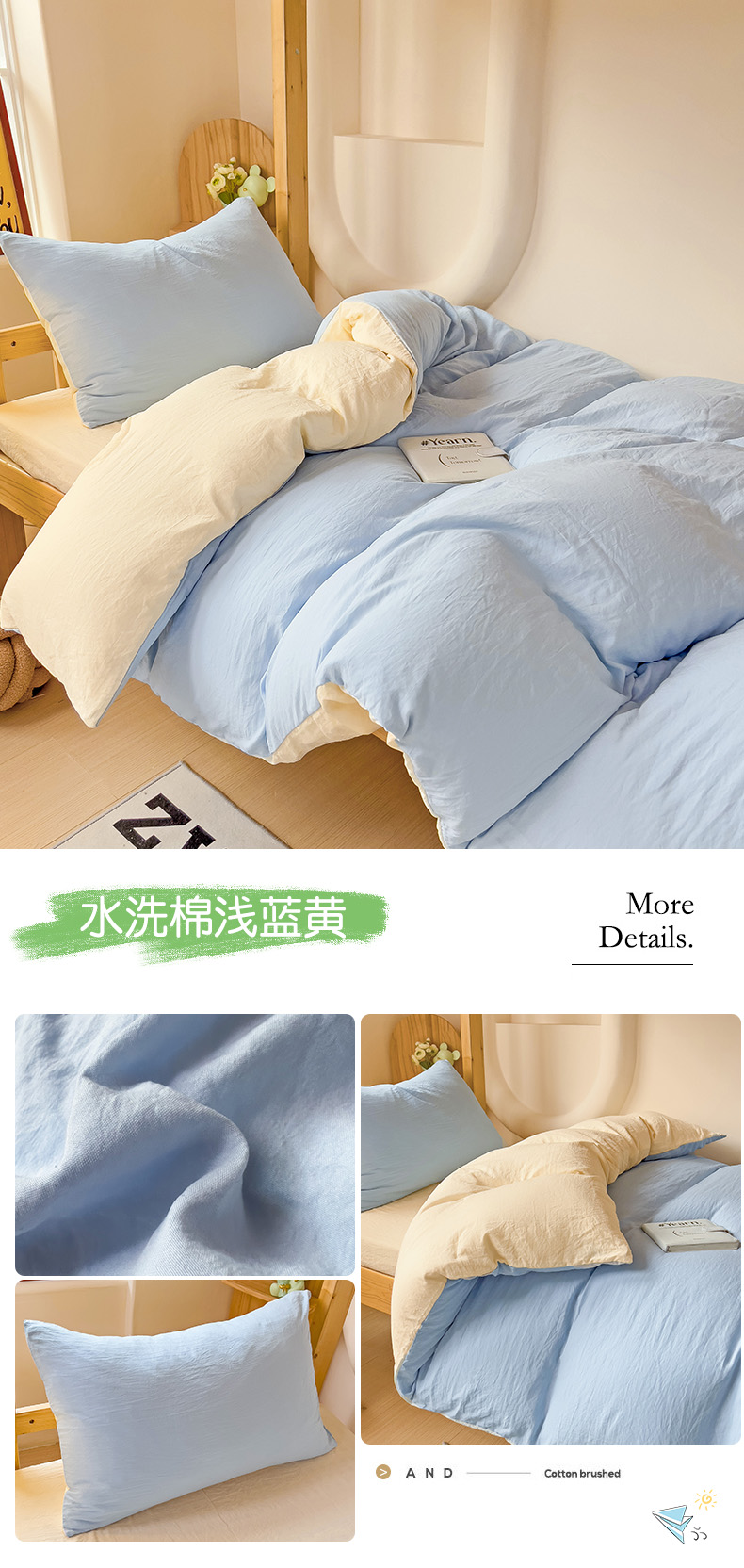 (总)欧妮家纺 2025新款纯色双拼水洗棉四件套学生宿舍上下铺床单被套三件套床上用品-【含买家秀】