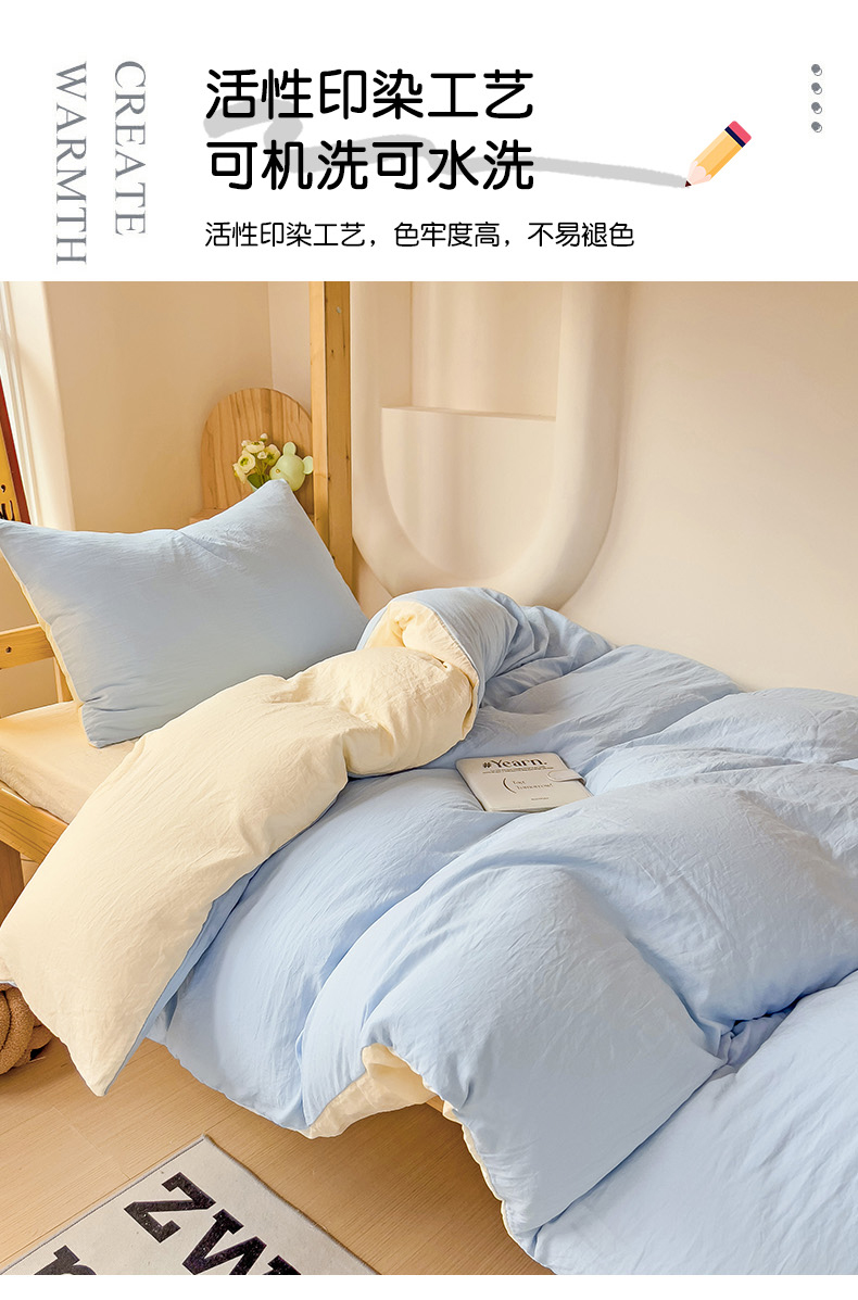 商品名称:(总)欧妮家纺 2025新款纯色双拼水洗棉四件套学生宿舍上下铺床单被套三件套床上用品-【含买家秀】