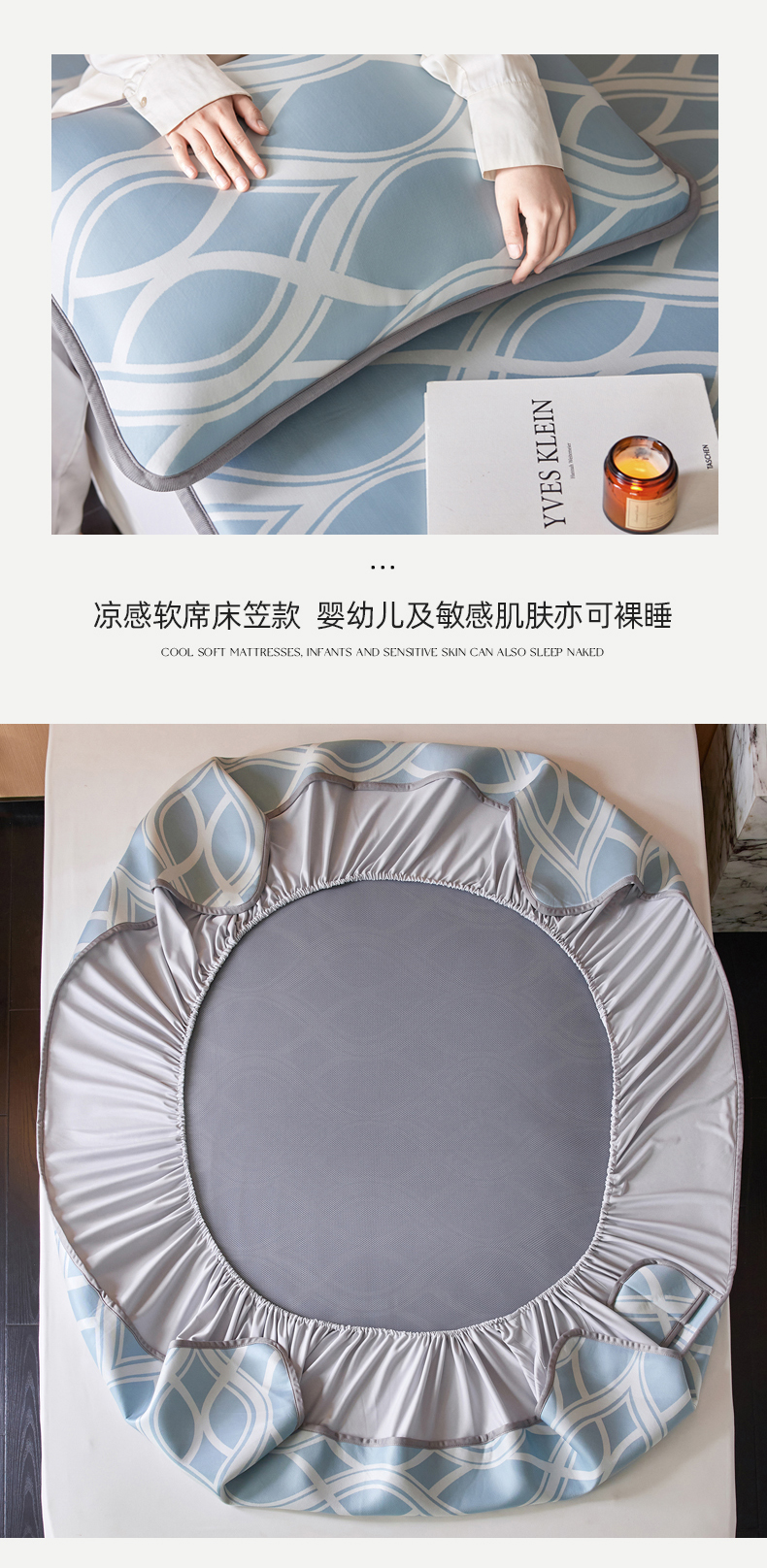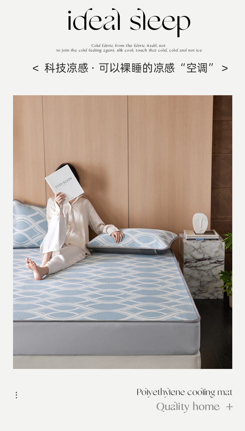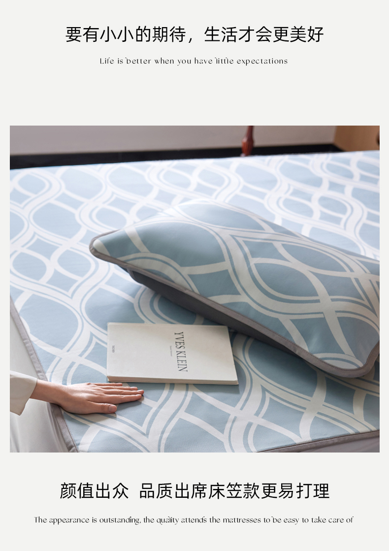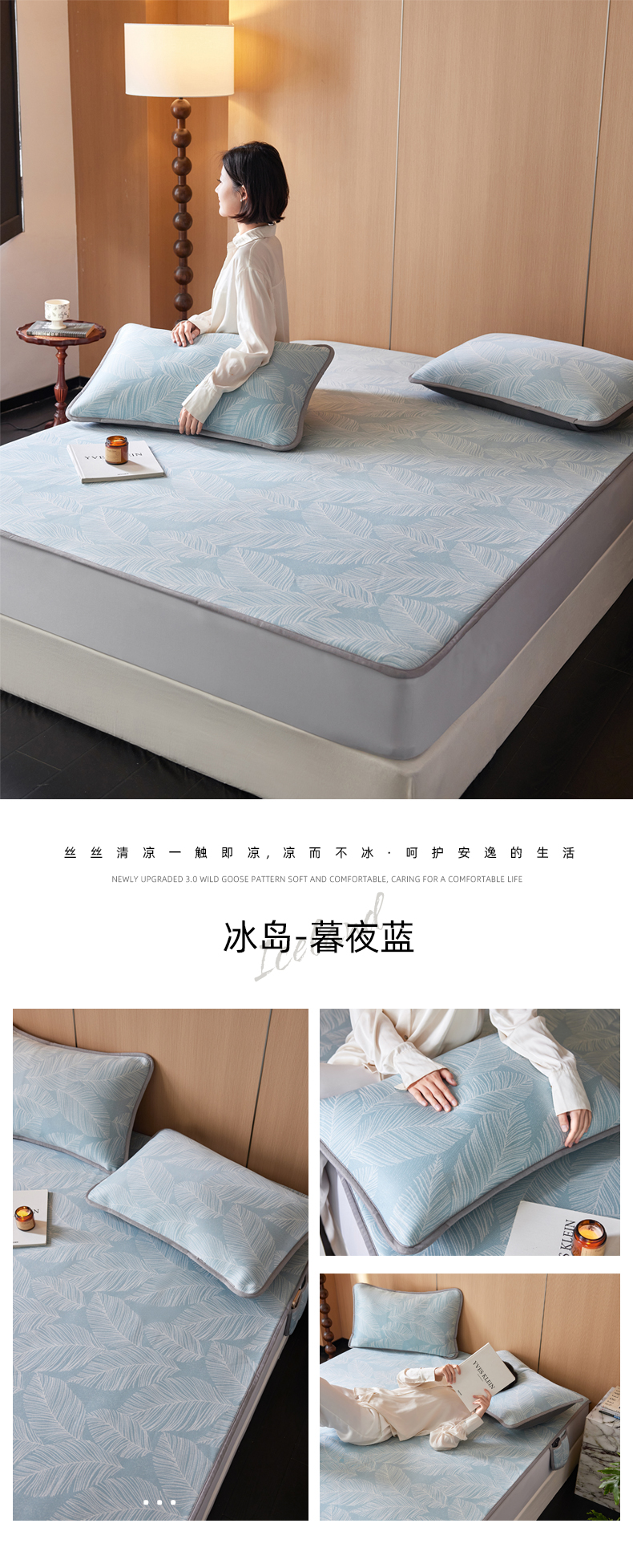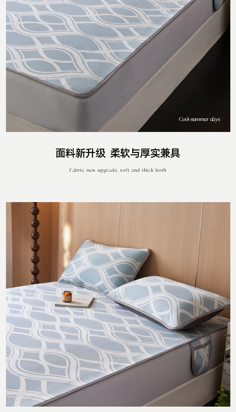 商品名称:千朵森 2026新款A类抗菌冰岛冰感丝床笠款凉席三件套 风格二 冰岛-晴空蓝