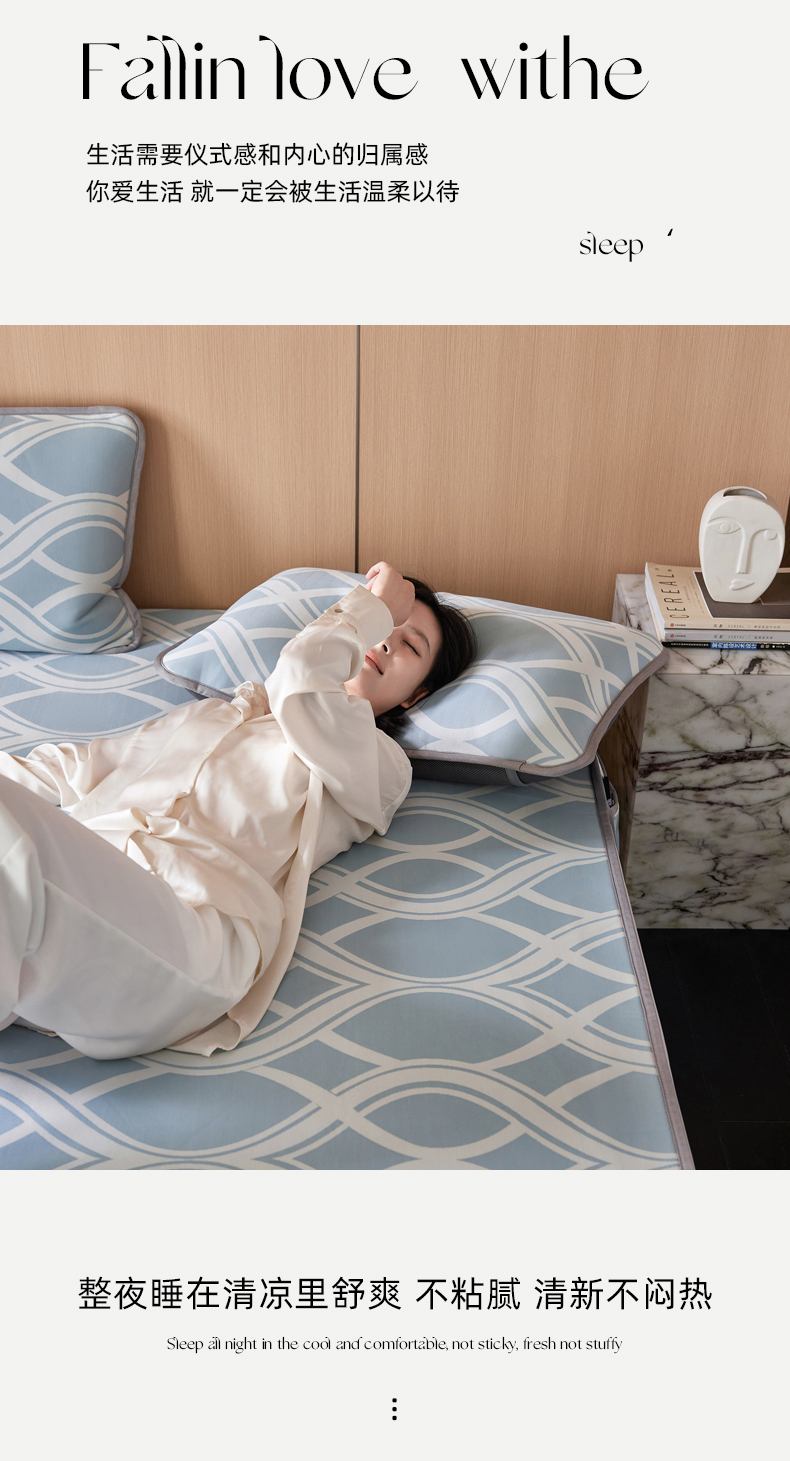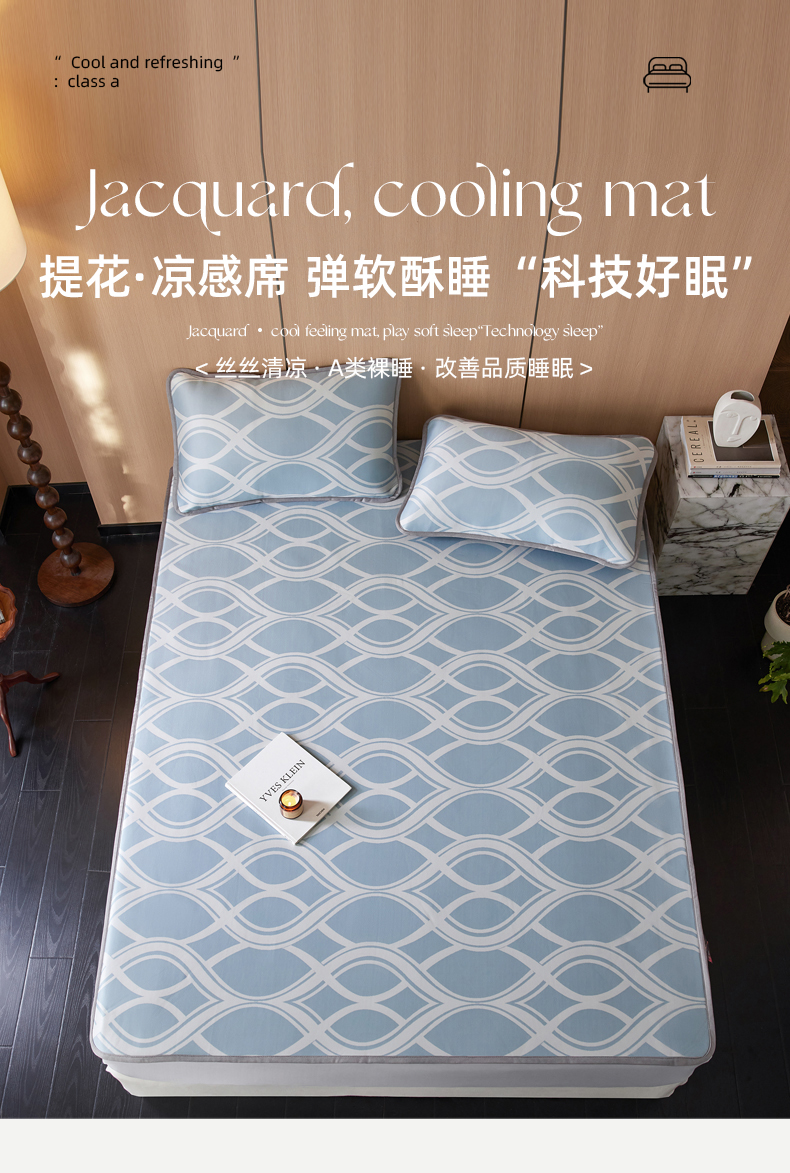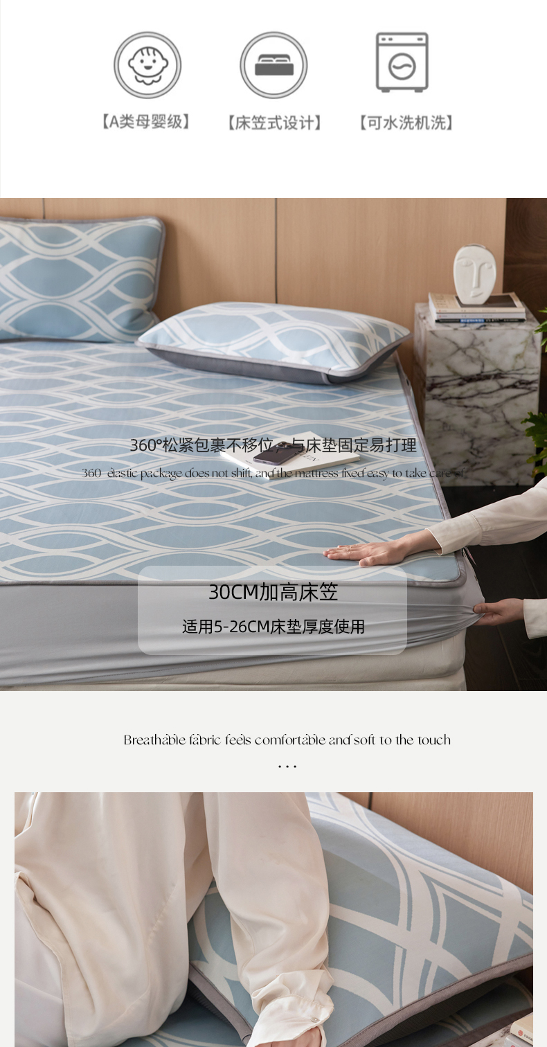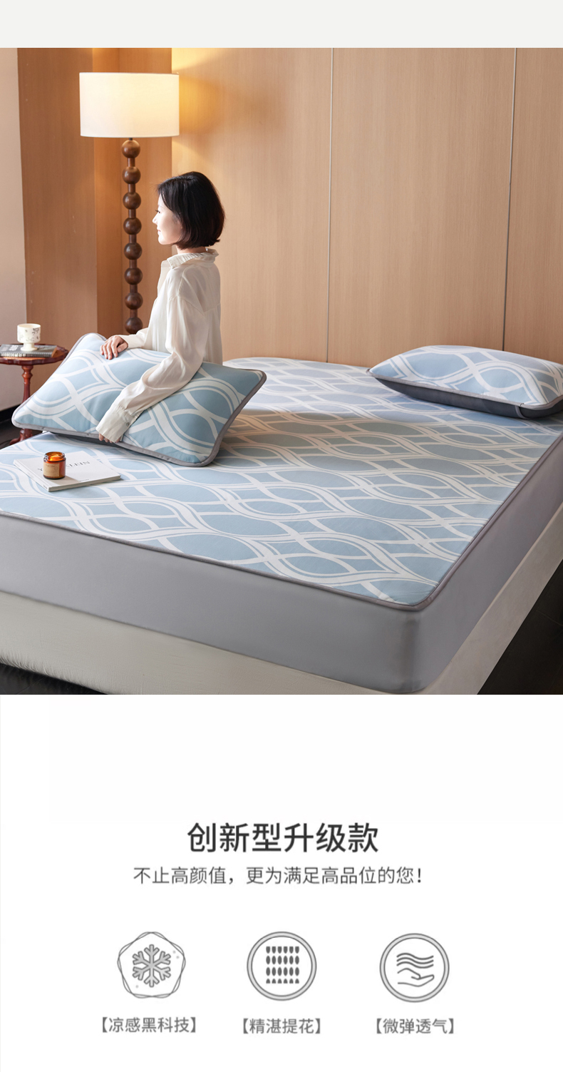 千朵森 2026新款A类抗菌冰岛冰感丝床笠款凉席三件套 风格二 冰岛-晴空蓝