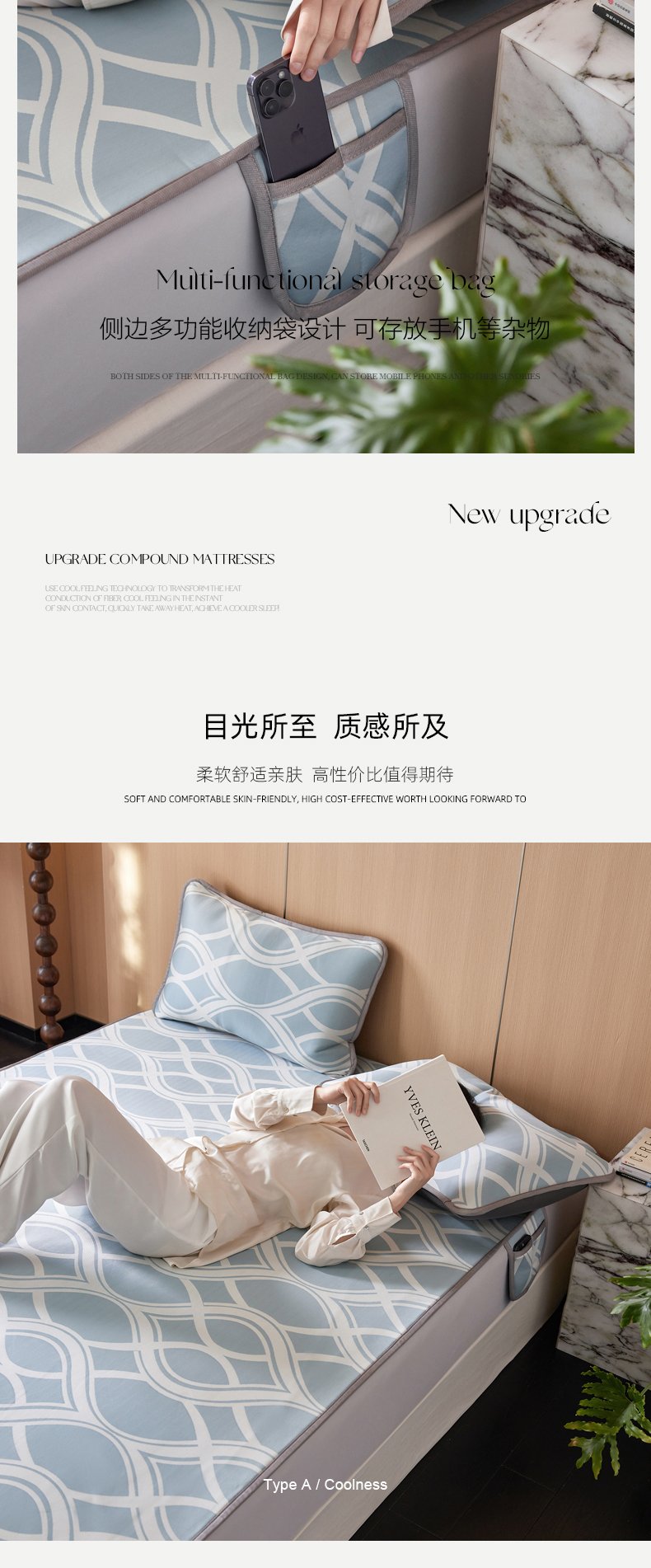 (总)千朵森 2026新款A类抗菌冰岛冰感丝床笠款凉席三件套 风格二,冰岛-暮夜蓝,冰岛-浅茶杏,冰岛-晴空蓝,冰岛-山茶灰,冰岛-山梗灰
