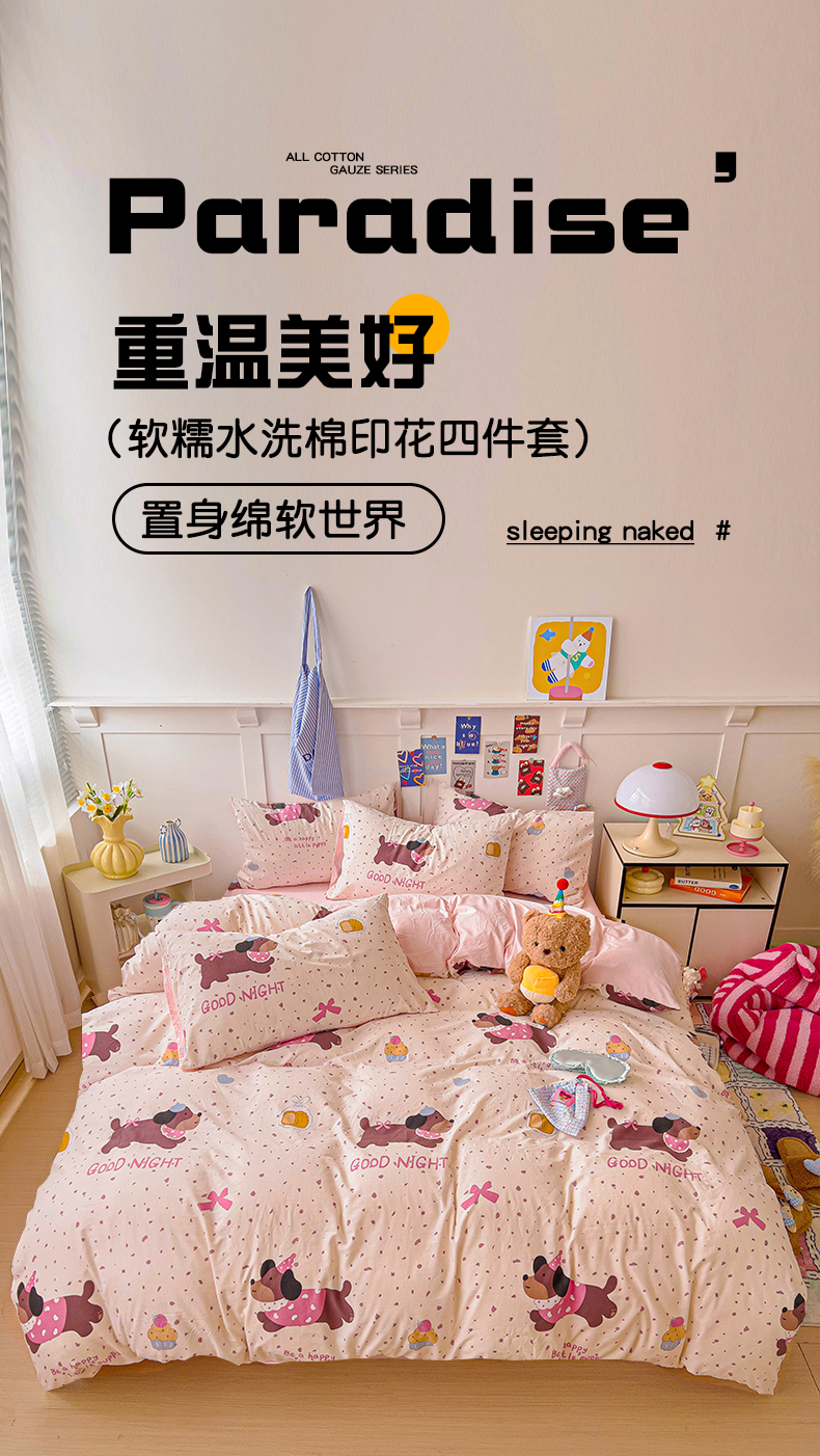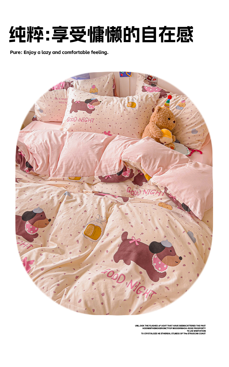 当前位置: 91家纺网 > 商品网购 > 床品套件 > 四件套 > 水洗棉四件套 > 欧妮家纺 2025新款AB版印花水洗棉四件套系列卡通床单被套学生宿舍床上三件套-提供买家秀 彩彩狗