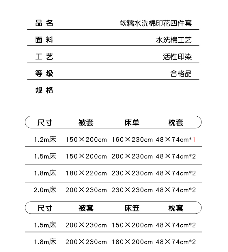 1.8m床单四件套被套180*220 | ¥48.00 |