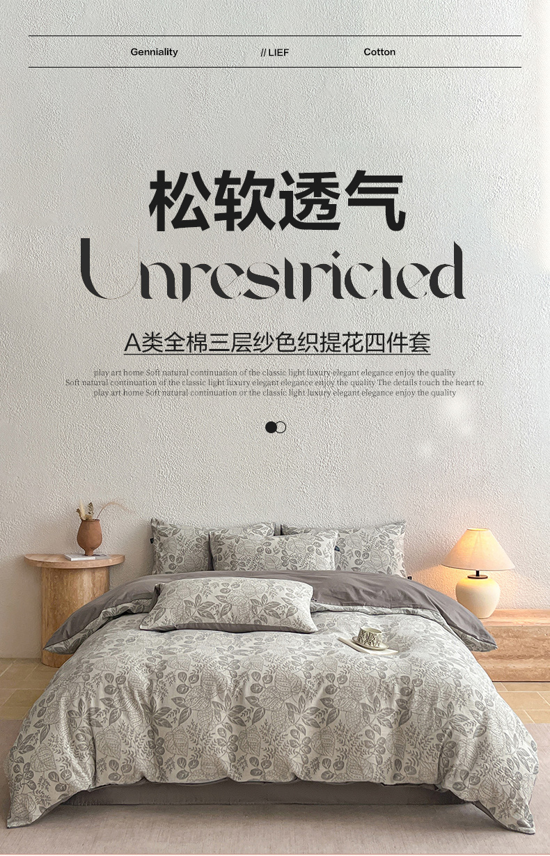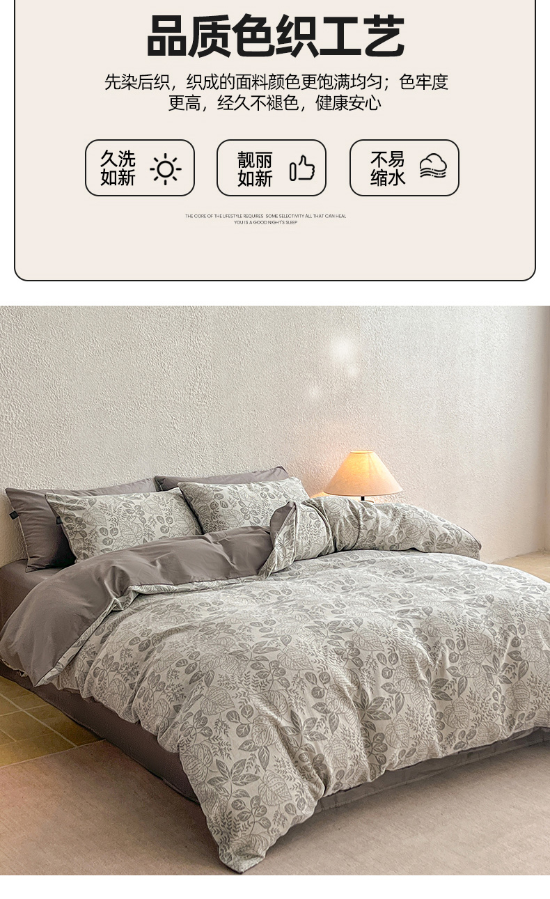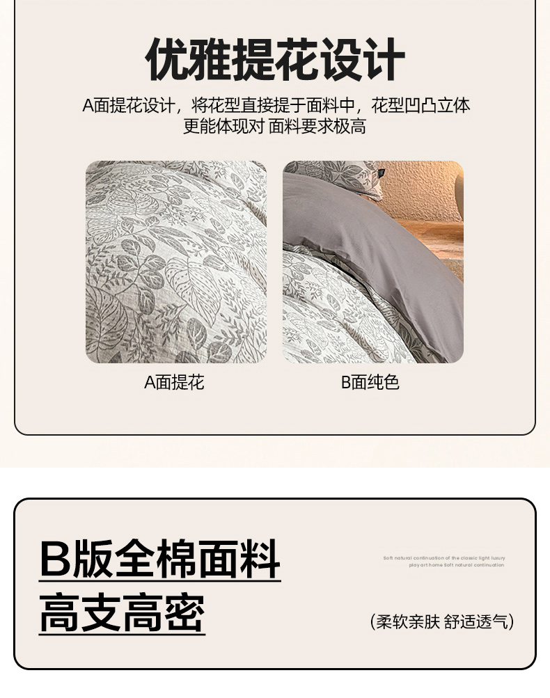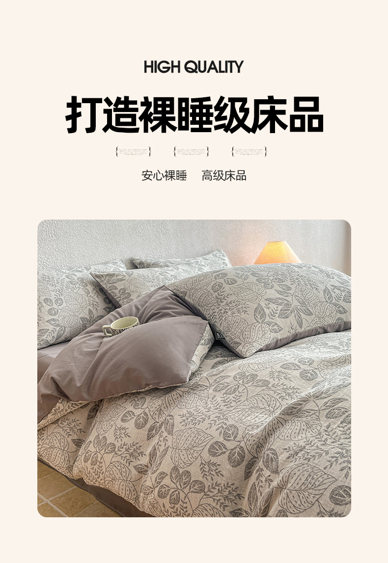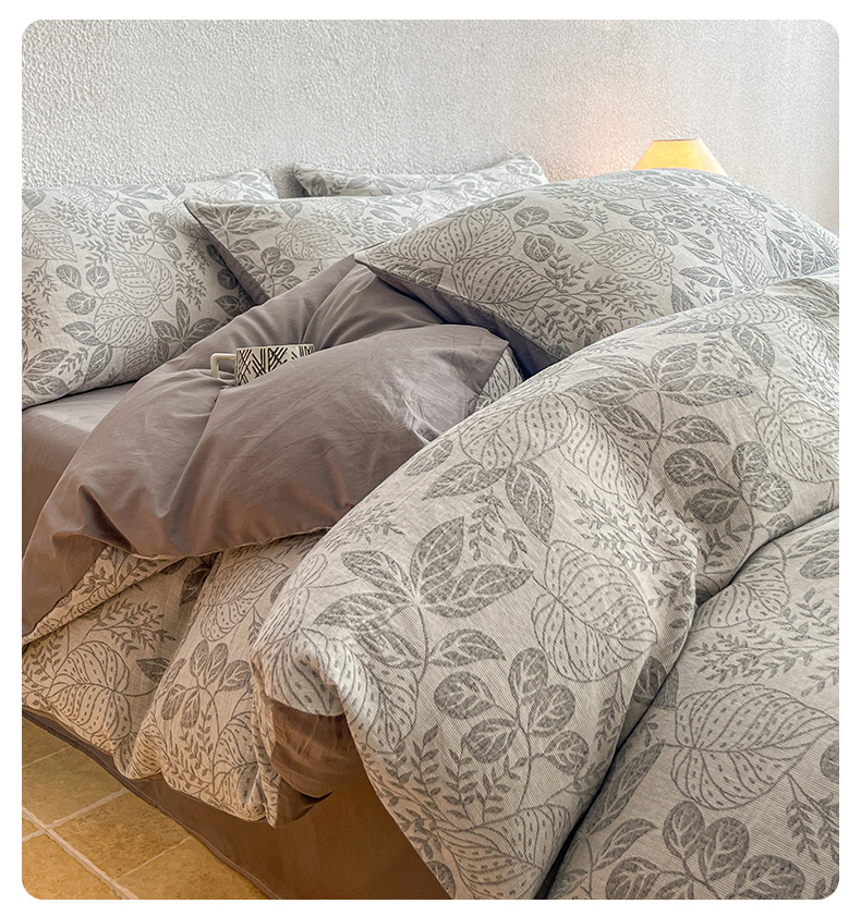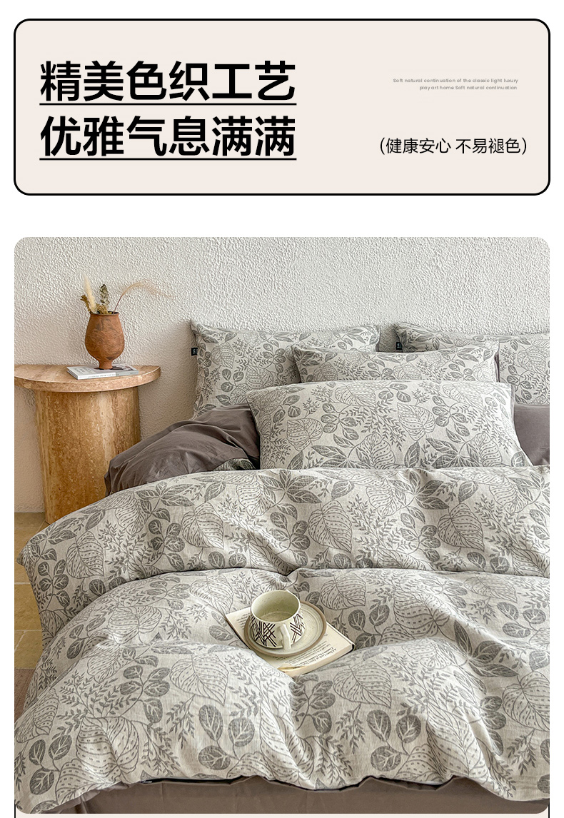 当前位置: 91家纺网 > 商品网购 > 床品套件 > 四件套 > 全棉普通四件套 > 恋人优选 2026新款全棉纯棉三层提花四件套 茎叶时光-灰