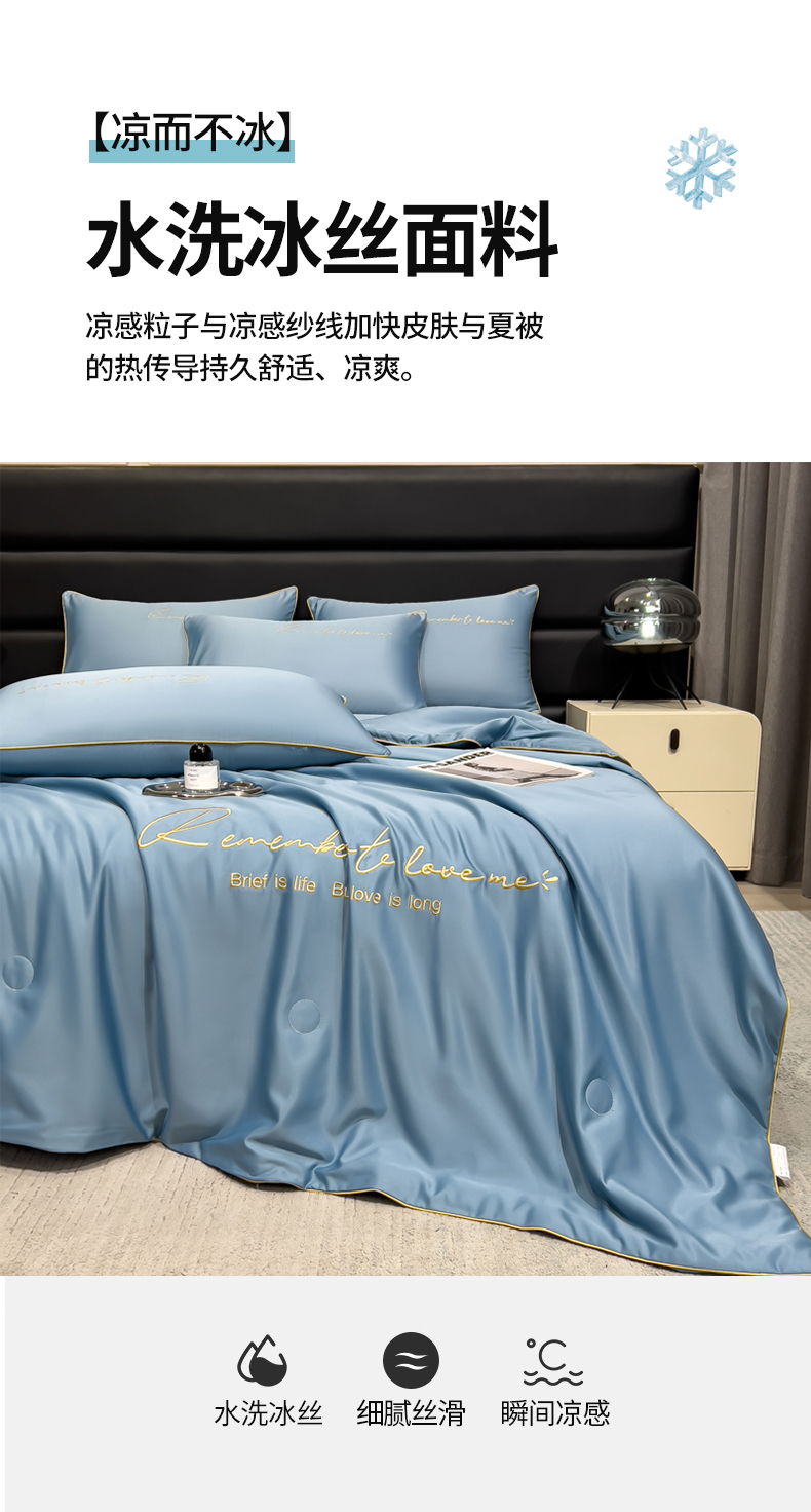 云恋家纺 2026新款轻奢高级感水洗冰丝刺绣夏凉被凉感可裸睡空调被四件套学生薄款被-一生所爱系列 一生所爱-宾利蓝