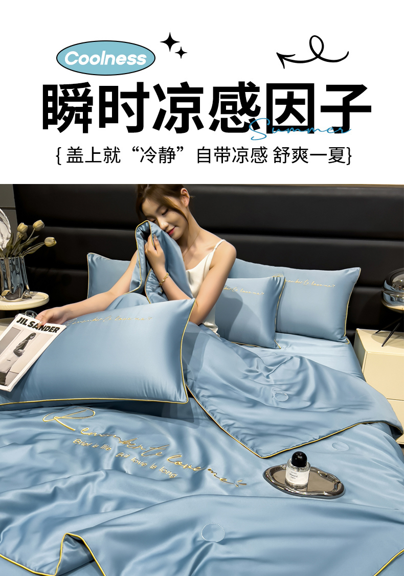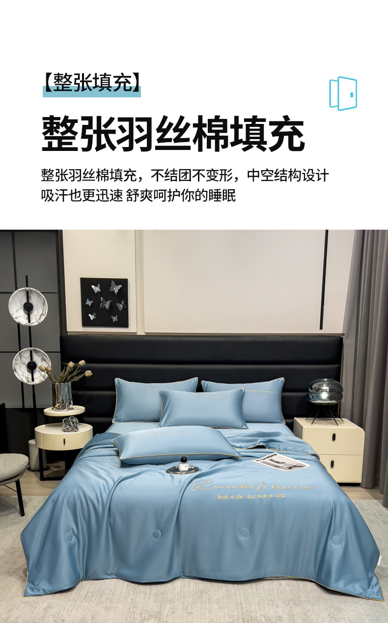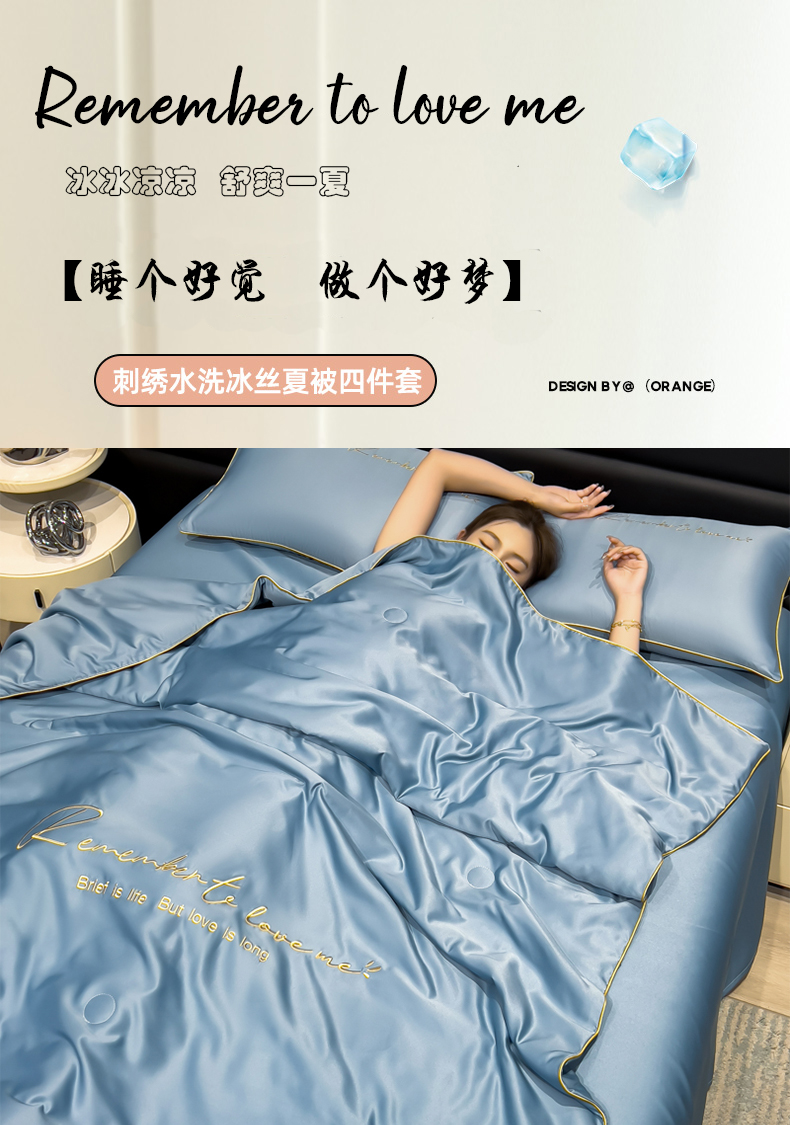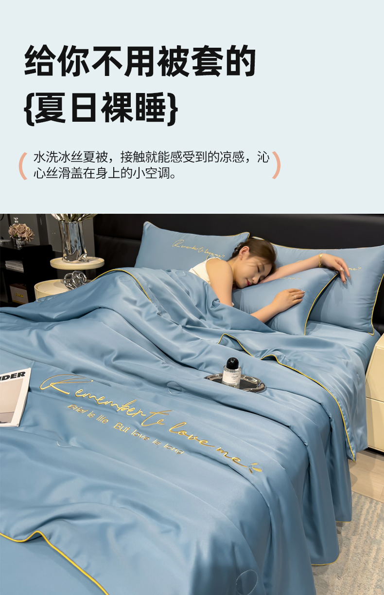 • 91家纺网 家纺一手货源 找家纺 云恋家纺 2026新款轻奢高级感水洗冰丝刺绣夏凉被凉感可裸睡空调被四件套学生薄款被-一生所爱系列 一生所爱-宾利蓝