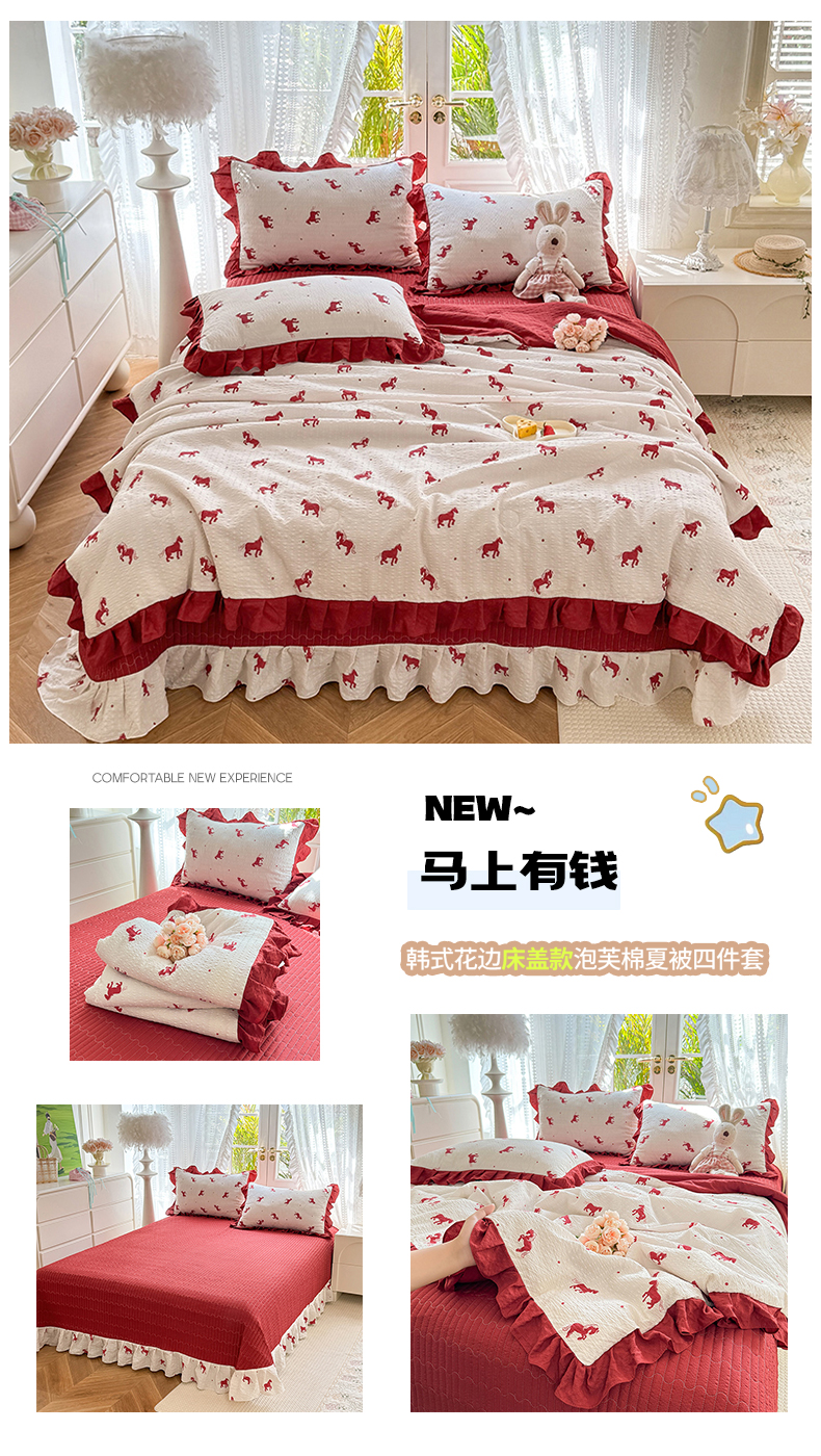 (总)韩约家纺 2026春夏新款韩式花边泡芙棉床单款夏被夏凉被空调被四件套,奶油泡芙,安暖如夏,宝妮,波点红,花春城,马上有钱,苏糖咖,旺旺,微花耳耳,星梦伙伴,星星人,紫色心情