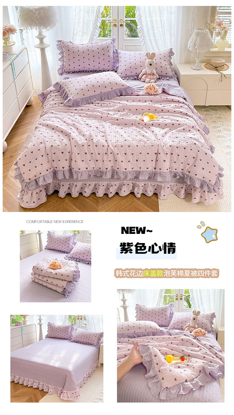商品名称:韩约家纺 2026新款泡芙棉床盖款夏被夏凉被空调被四件套 紫色心情