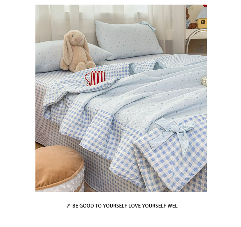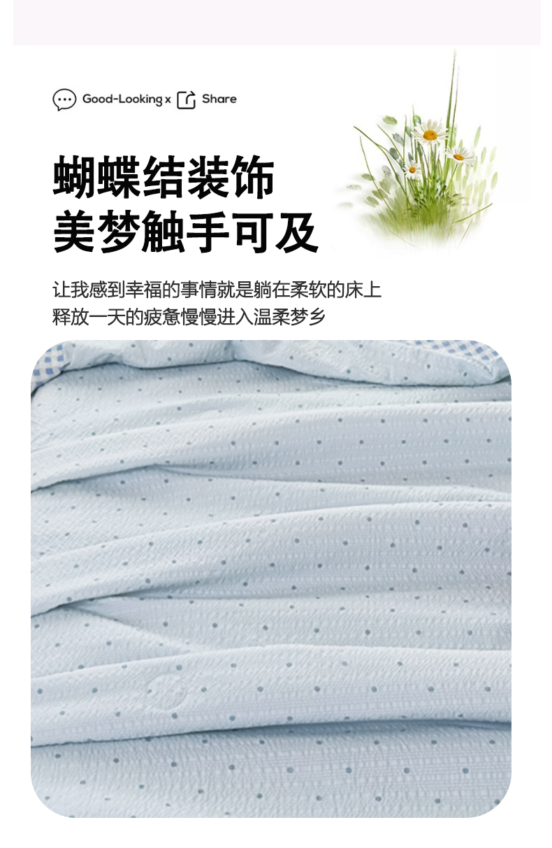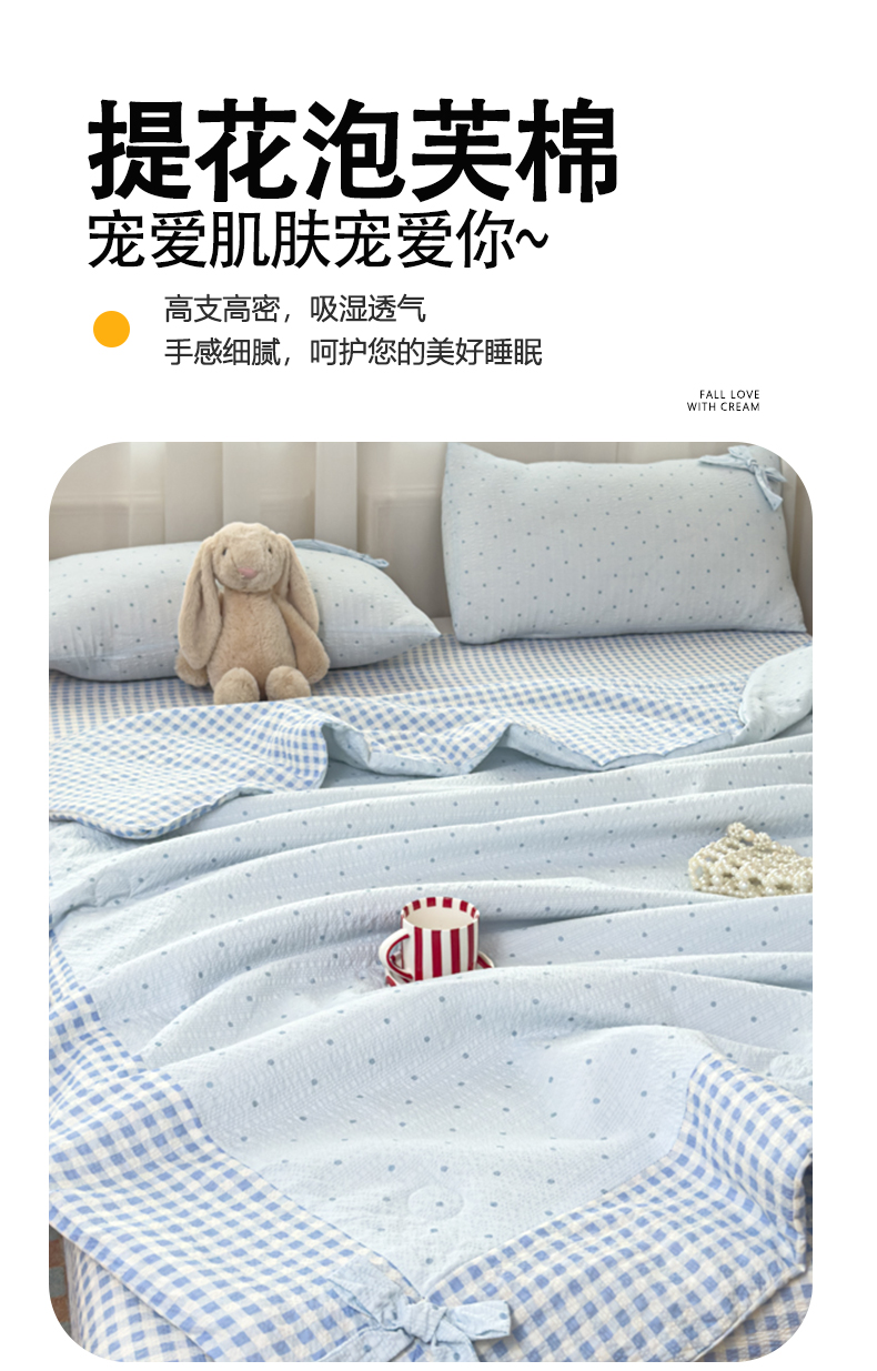 (总)爱彼家纺 2026春夏新款韩式花边泡芙棉床单款夏被夏凉被空调被四件套,海盐蓝波点,奶粉波点,奶红波点,奶灰波点
