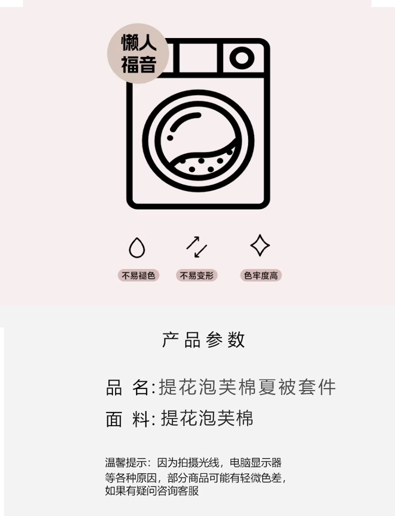 3、通州区市场监督局友情提醒,近期涉及到床上用品不褪色不掉毛不缩水的投诉和以世界知名品牌图案为面料的床品举报较多。请各商家自检自查,对照整改或进行下架处理。